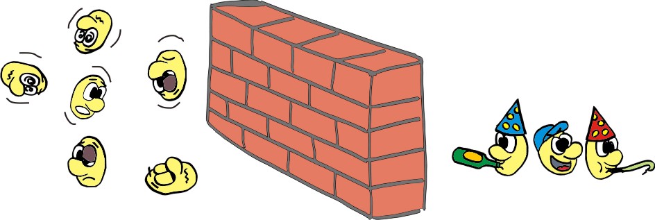 Lo obvio es pensar que, como el exterior de los atomos de la pared está formado por electrones, y que tanto estos como los de la estampida tienen una carga eléctrica negativa y cargas iguales se repelen, entonces la estampida de electrones será repelida, rebotando estos en todas direcciones como pelotas en un juego de fronton, y es cierto, casi todos los electrones son repelidos, pero como diría Cantinflas, “ahí está el detalle”, casi todos..., no todos. Por alguna misteriosa razón, algunos electrones reaparecen al otro lado de la pared, tras aparentemente desaparecer al acercarse a ella, como si hubiesen encontrado un camino a través de la pared para pasar al otro lado, un túnel.