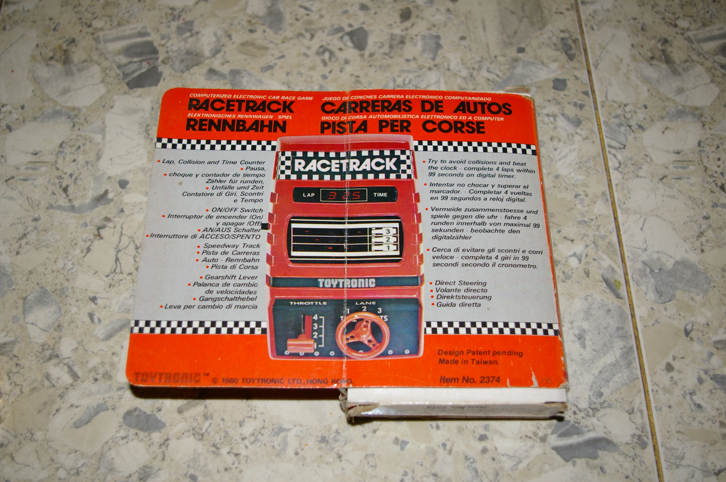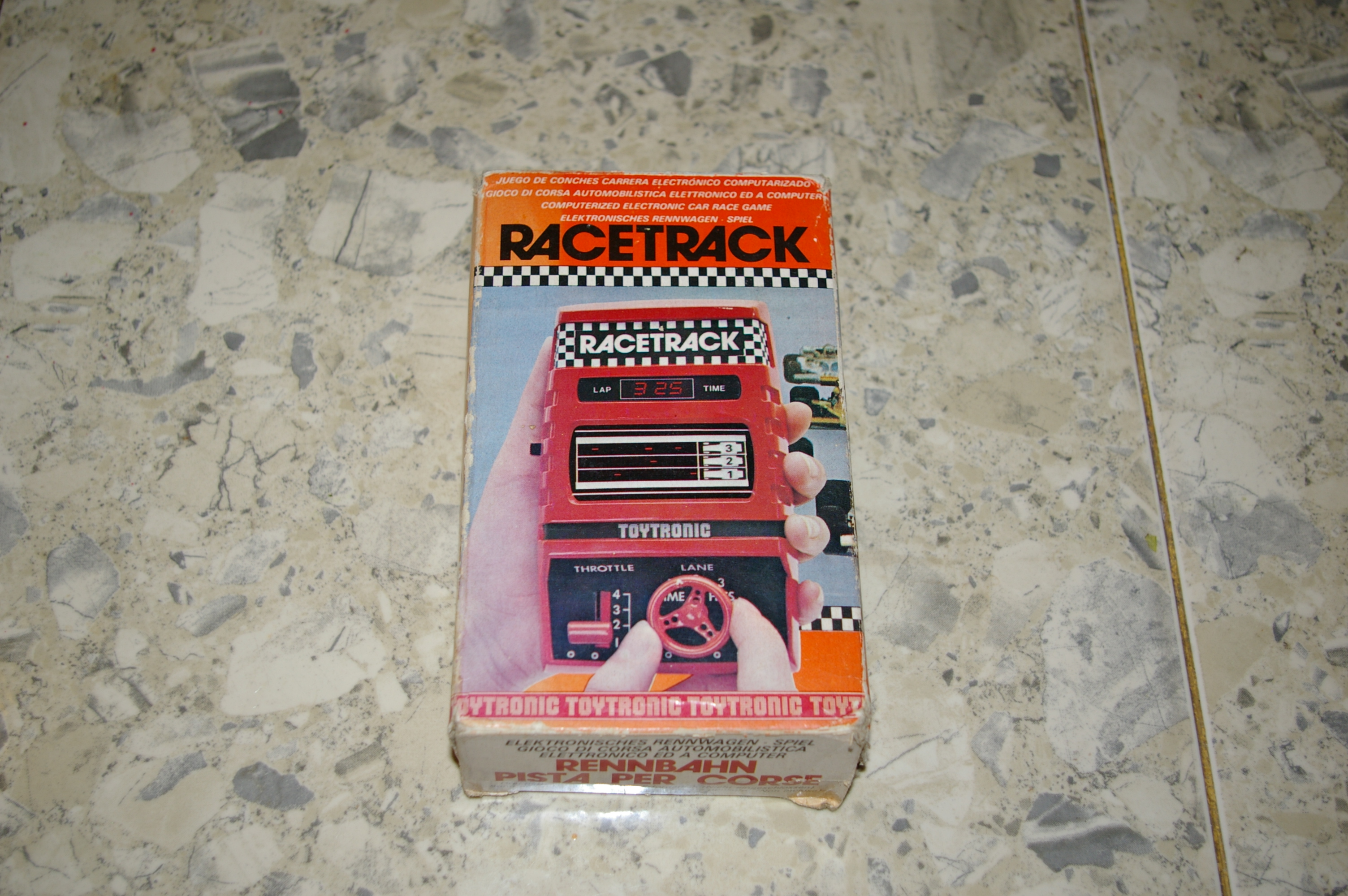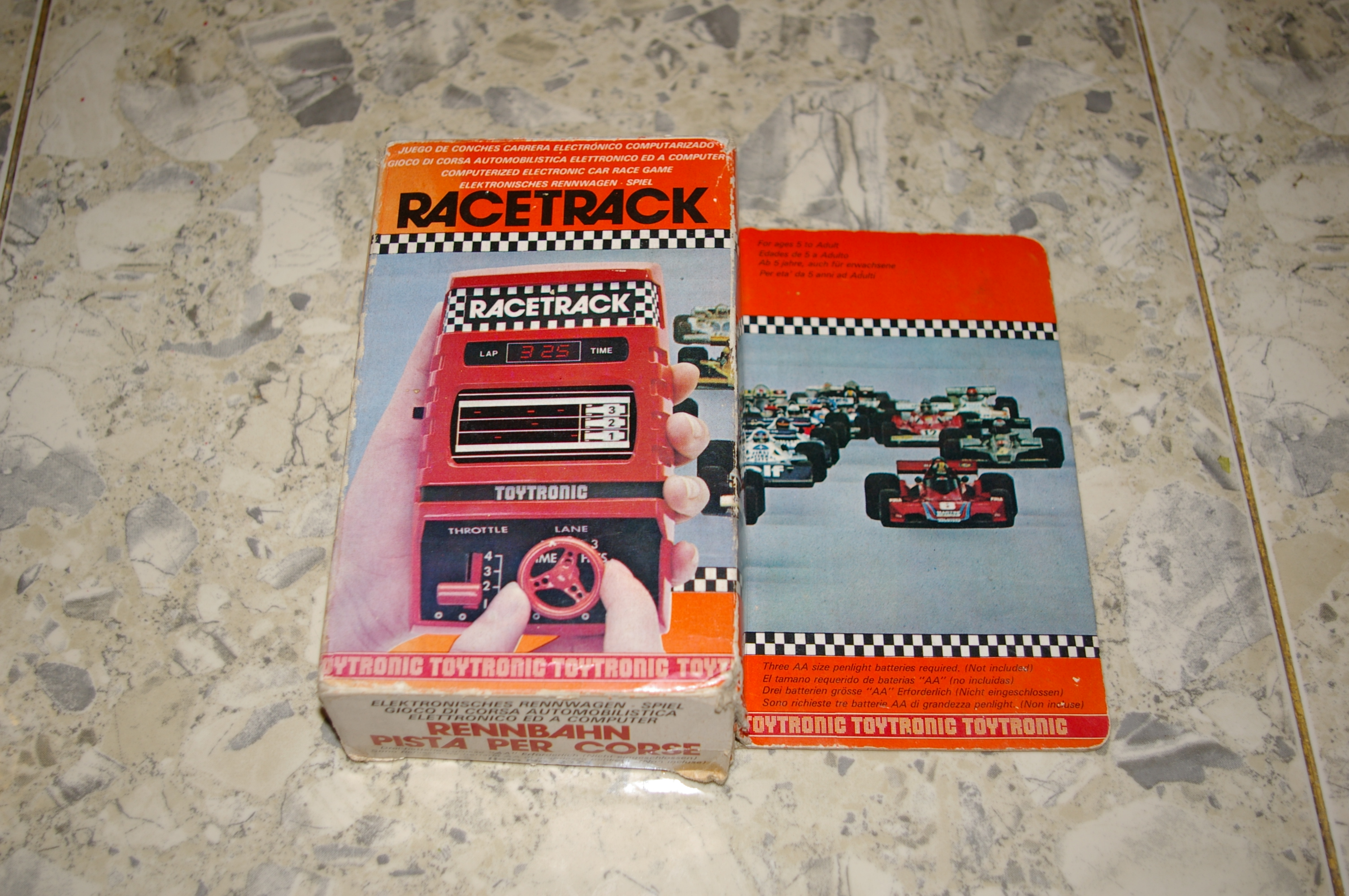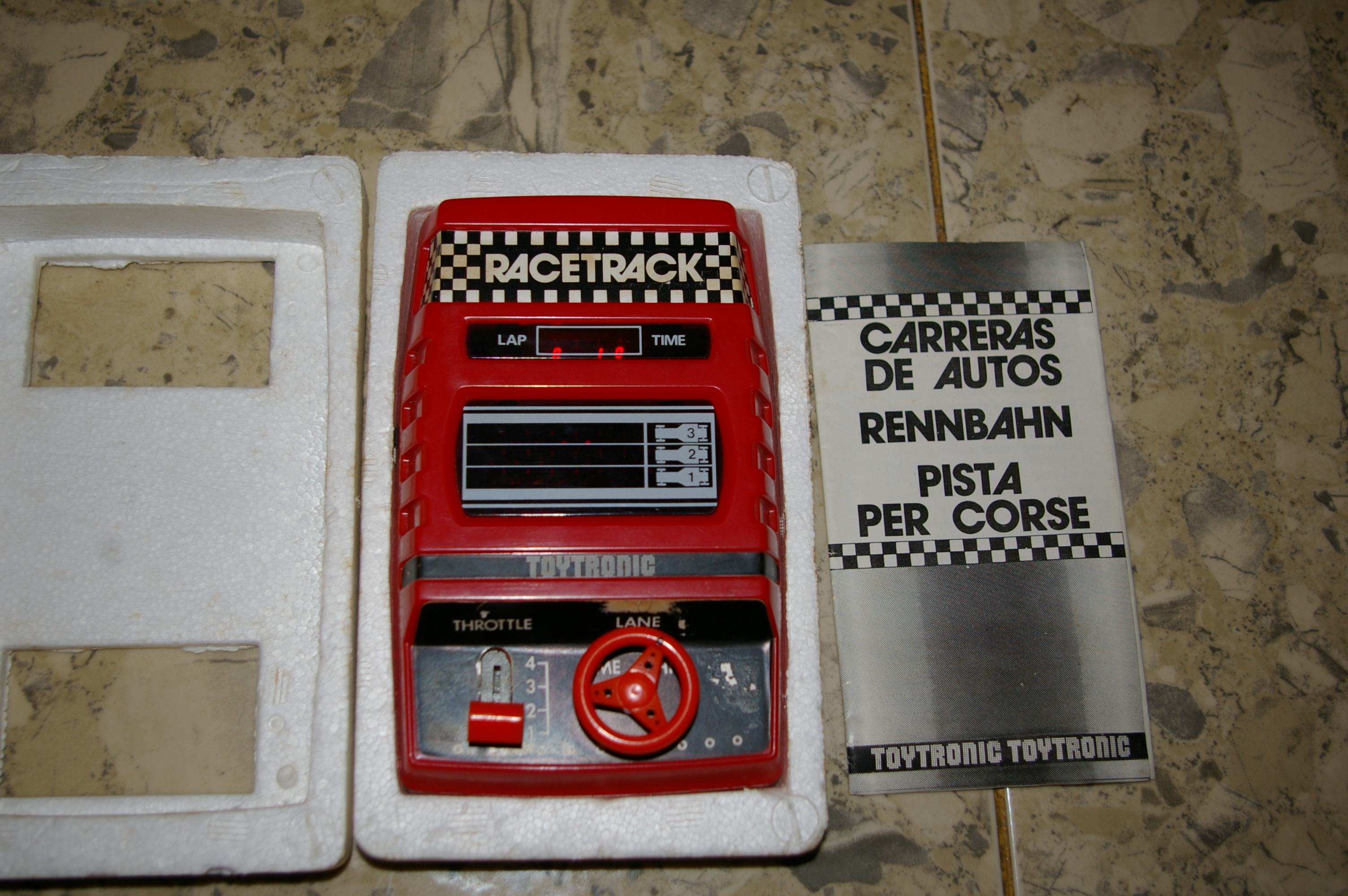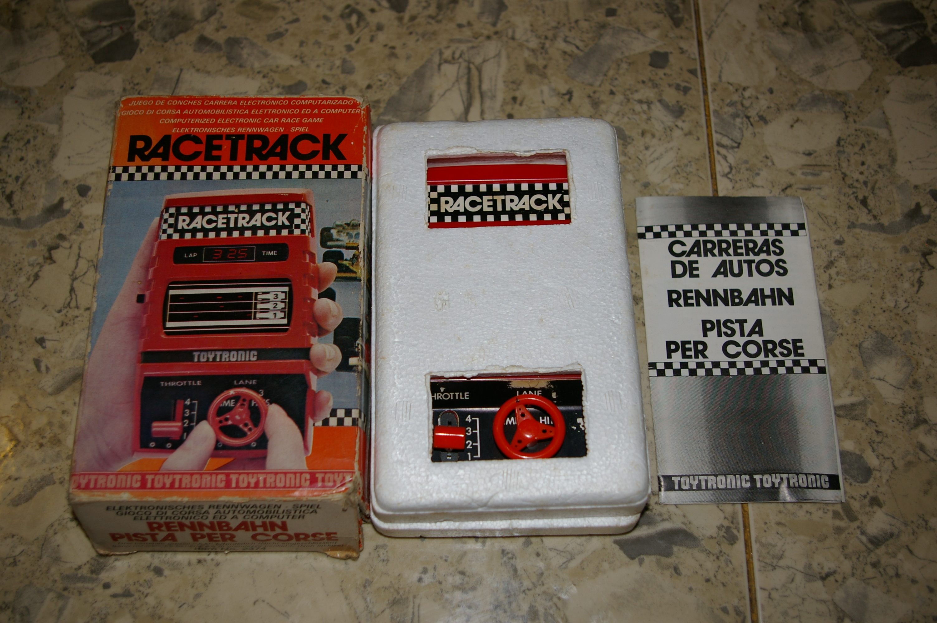 El segundo juego es muy parecido al primero, en cuanto proposito y mecánica; se trata del Racetrack de Toytronic, fabricado en 1980, la diferencia fundamental con el primero, es que, en éste, los autos son representados por leds, que se encienden en la medida que avanzan, aquí también el propósito es esquivar a los que se nos aproximan, a la vez que acumulamos vueltas.