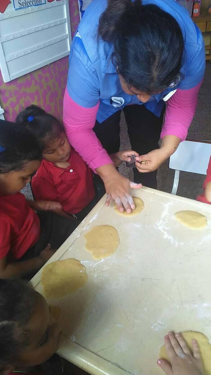 Una vez unidos todos los ingredientes procedemos a amasar la masa arriba de una mesa, después que amasamos la masa y esta llegue a la contextura deseada, procedemos a armar nuestras ricas galletas.