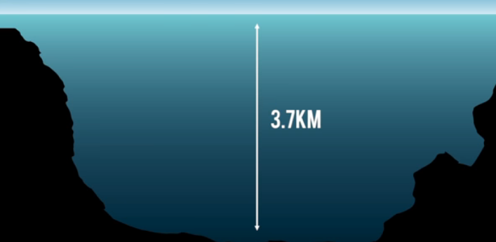 El océano cuenta con una profundidad de 3.7 Km pero en una de las islas marianas existe una profundidad de 11 km