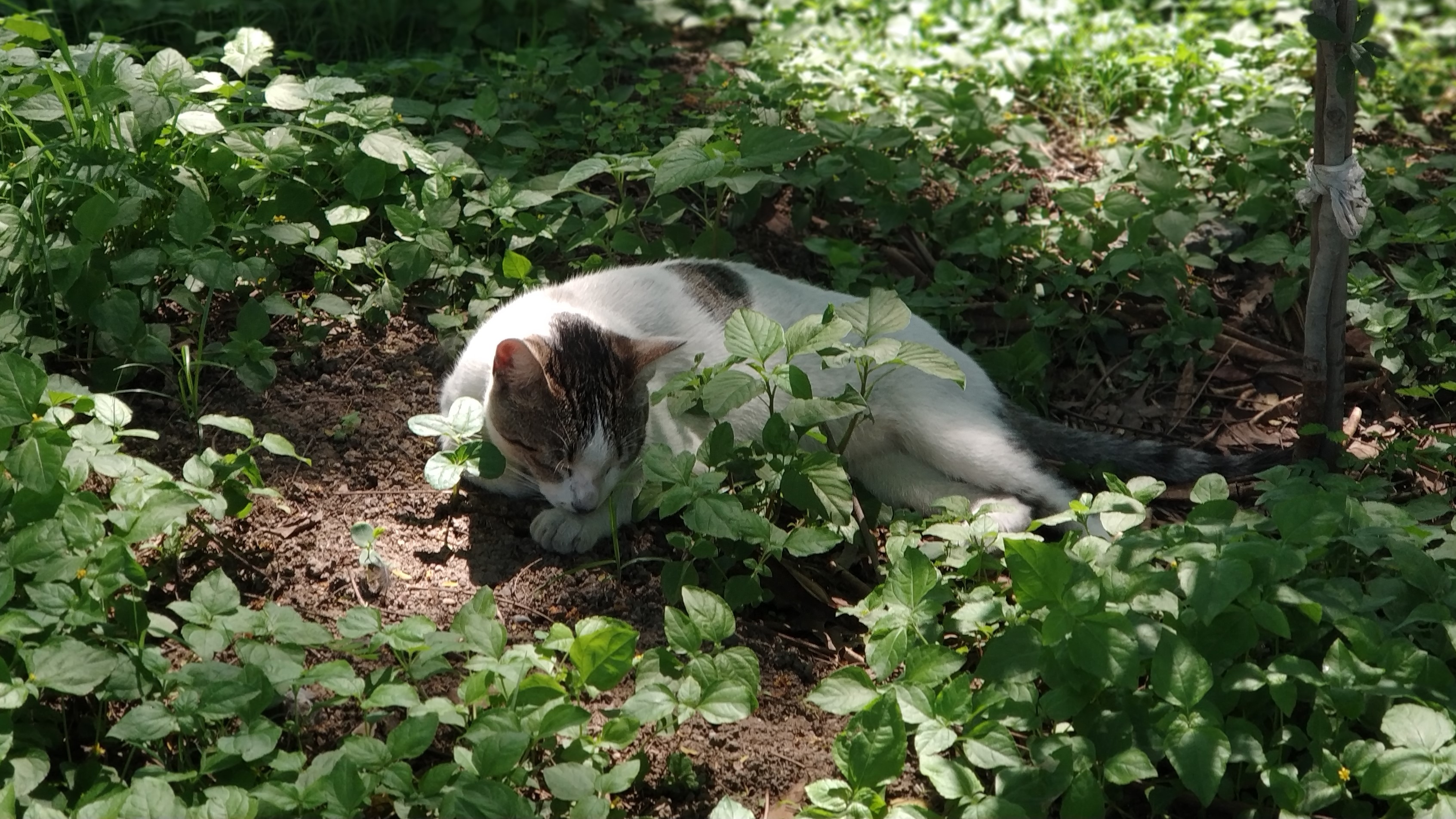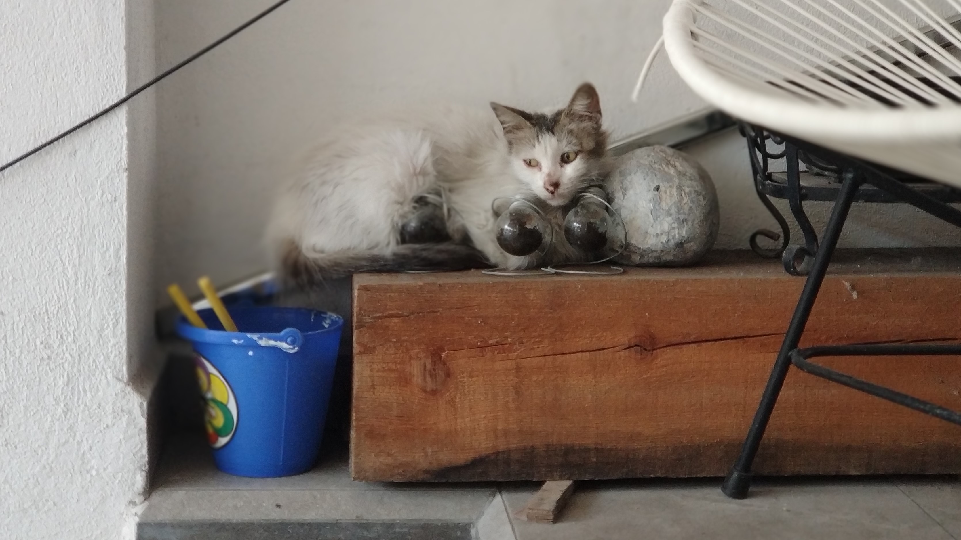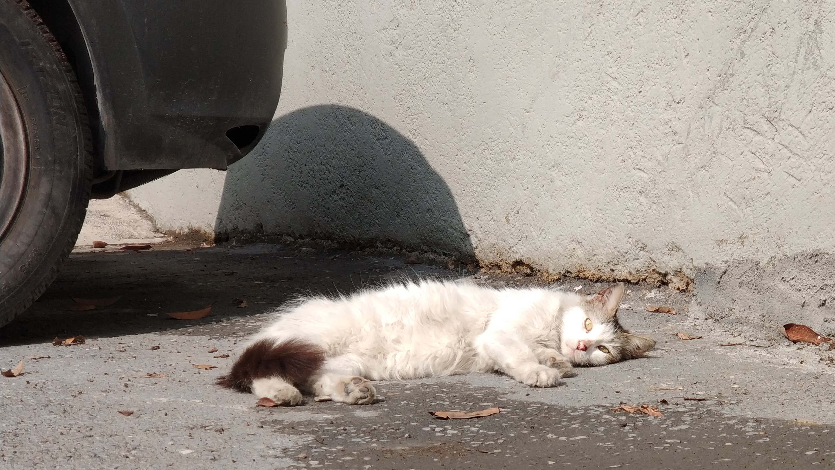 Estas fotos fueron tomadas fuera de mi casa, un gatito callejero buscó resguardo en un día caluroso.