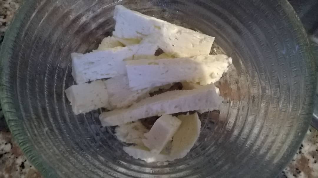 | 1 | Queso duro blanco. Cortado en palitos. |