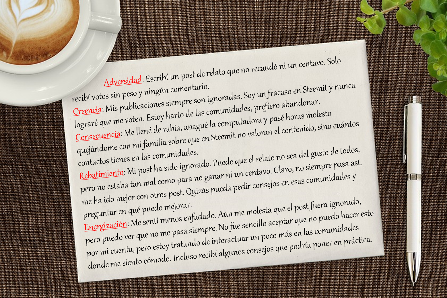 - Adversidad: describe el suceso, ¿qué ocurrió? ¿cuál es la situación?