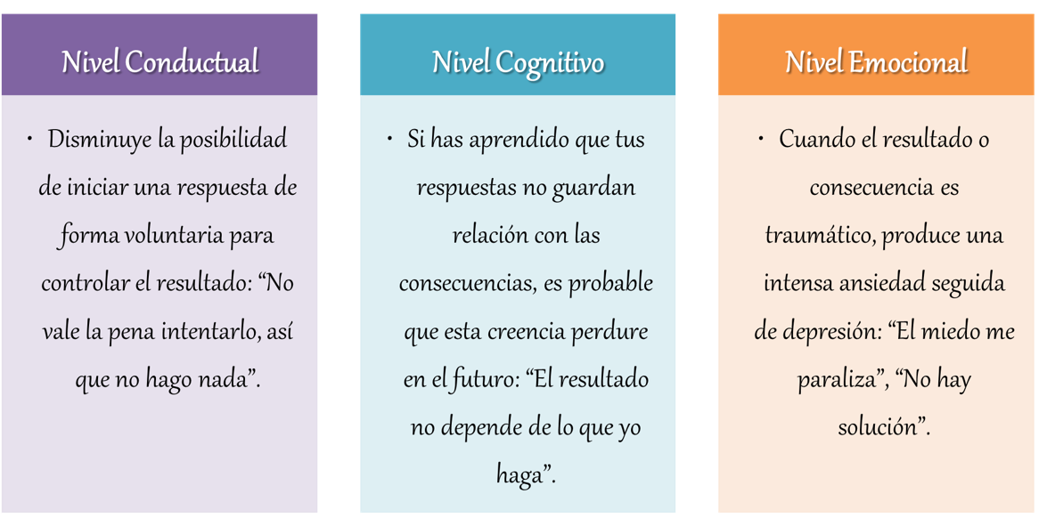 Extrapolando esta teoría al comportamiento humano, Seligman (1975) comenzó a iluminar el impacto que la impotencia puede generar a nivel conductual, cognitivo y emocional.