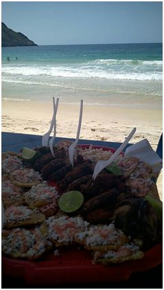 Hay muchos kioscos con gastronomía variada, en este viaje decidimos comprar un pescado con tostones y ensalada, y obviamente la fosforera re-potenciadora que no puede faltar. Este día la playa estaba sola como rara vez suele estar, fue un buen día de hermanas que muero por repetir.