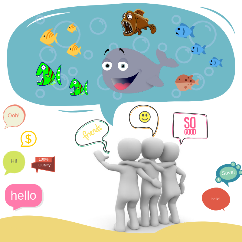 De ahí la importancia de encontrar amigos, compañeros peces a los cuales unirnos en el gran recorrido por ese gran océano. No importa si son pequeños peces o grandes ballenas, lo importante es unirnos a un banco de peces en el que todos quieran tener éxito. Así podran apoyarse mutuamente y hacer de esta, la mejor de las experiencias.