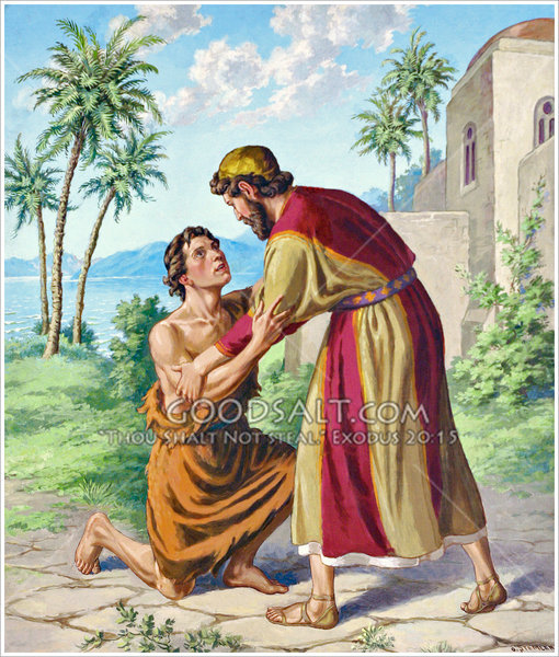 "¡NO! Dijo el padre, tú eres mi hijo. Te perdono.” Luego le dijo a sus siervos: “Traigan buena ropa y zapatos para mi hijo, preparen bastante comida. Tengamos una fiesta. Mi hijo está arrepentido, ha regresado, estaba muerto y ha revivido".