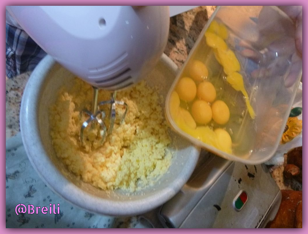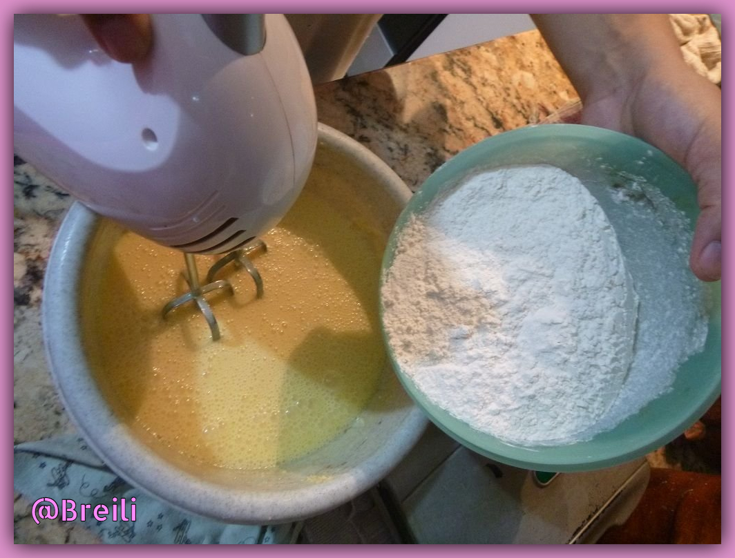 Continuamos agregando los huevos completos uno a uno y batimos hasta espumar la mezcla.