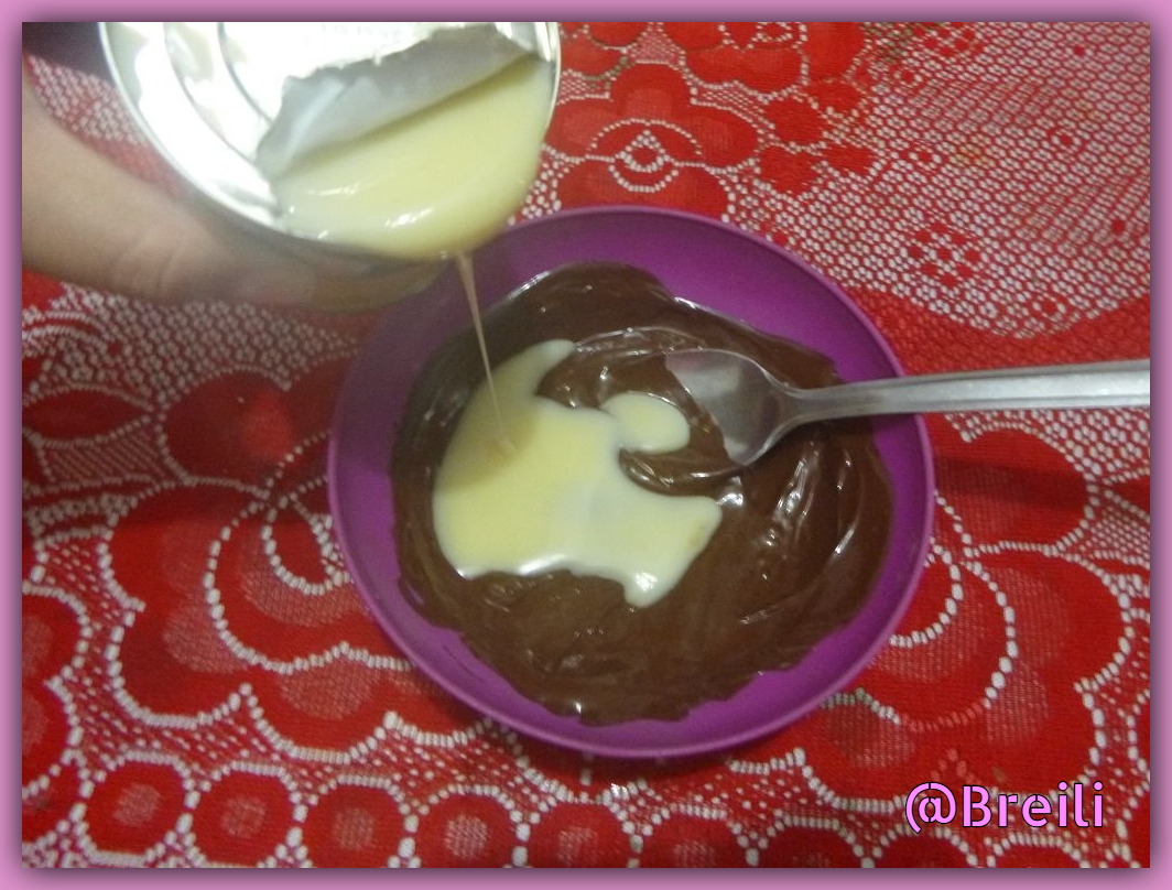 Agregamos la leche condensada y mezclamos con una cucharilla.