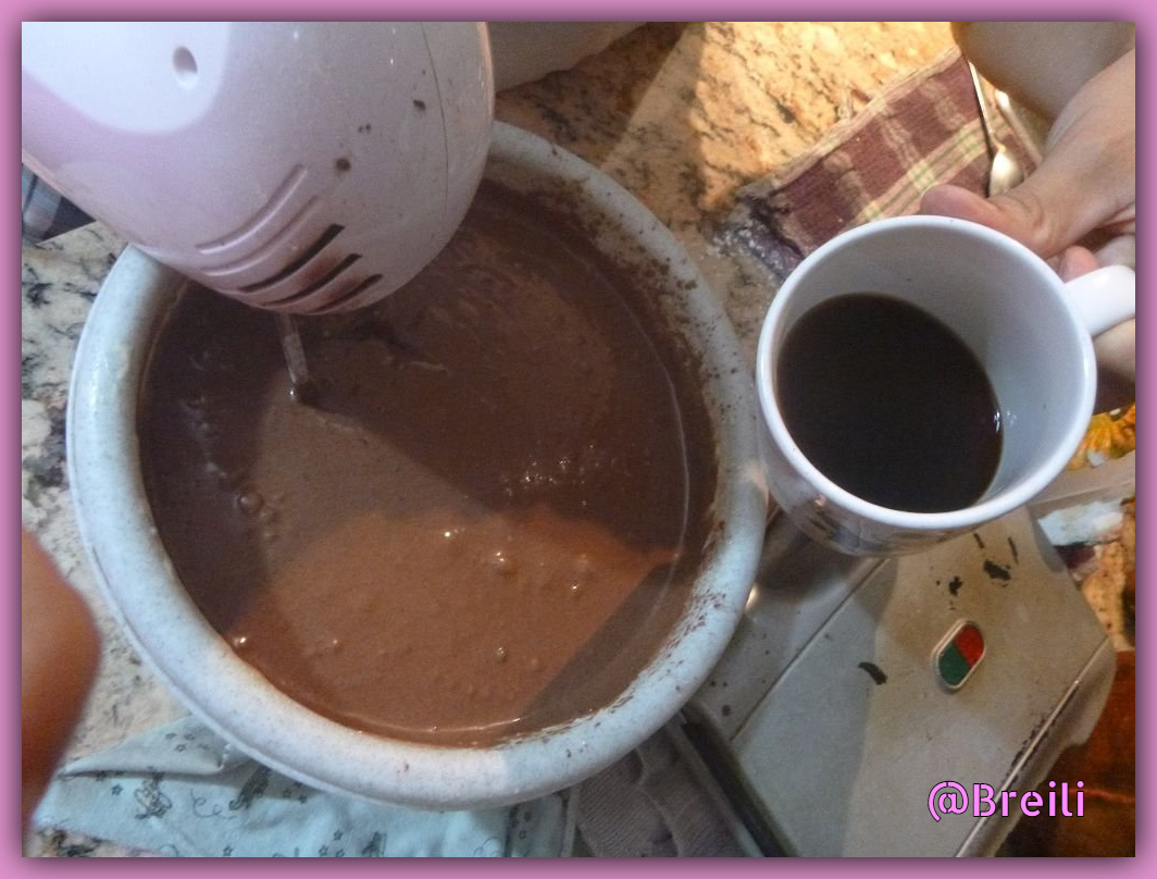 Ahora agregamos el ingrediente secreto: café líquido, su función será realzar el sabor del chocolate, esta es una recomendación de un amigo que estudia gastronomía.