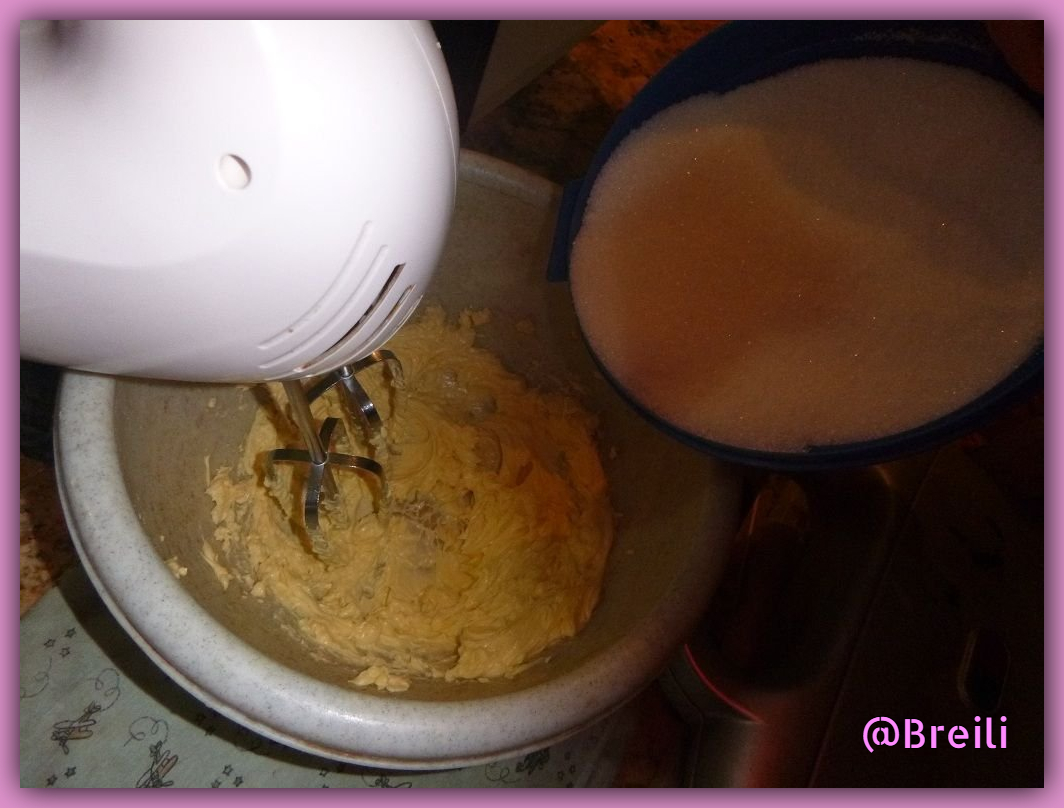 Para realizar la mezcla lo primero será suavizar la margarina hasta que tome un color blanco, agregar el azúcar y continuar batiendo hasta homogeneizar.