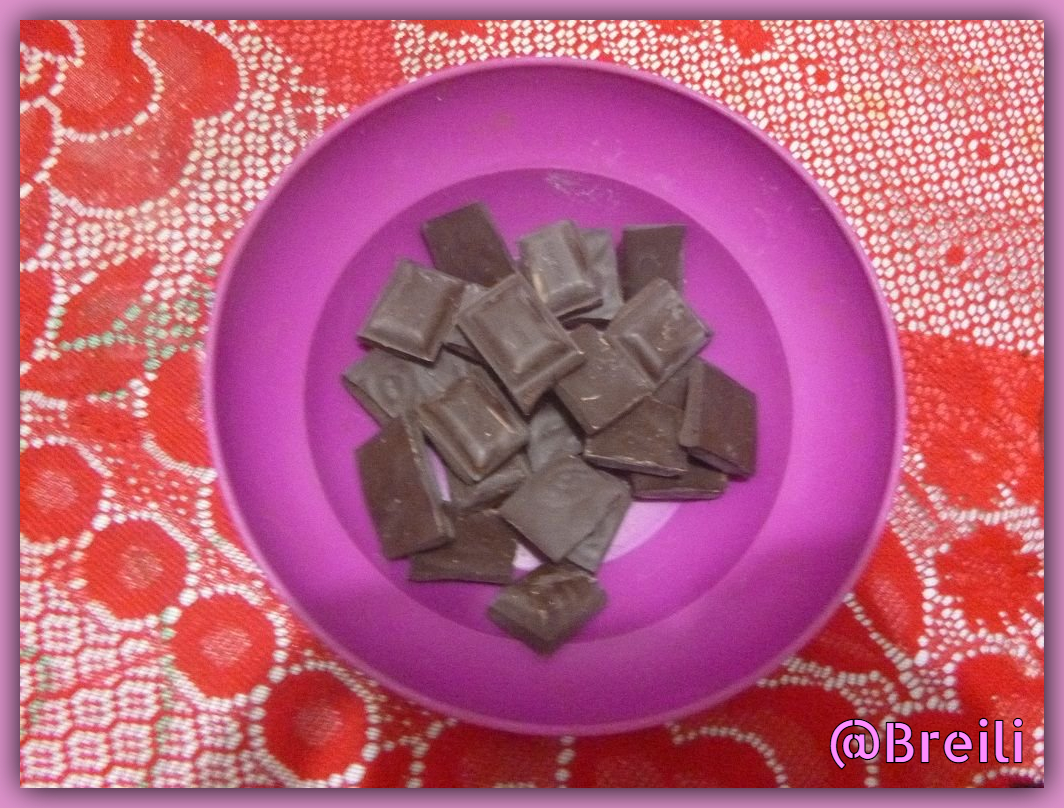 Dividimos el chocolate en trozos y derretimos en el microondas por un minuto.