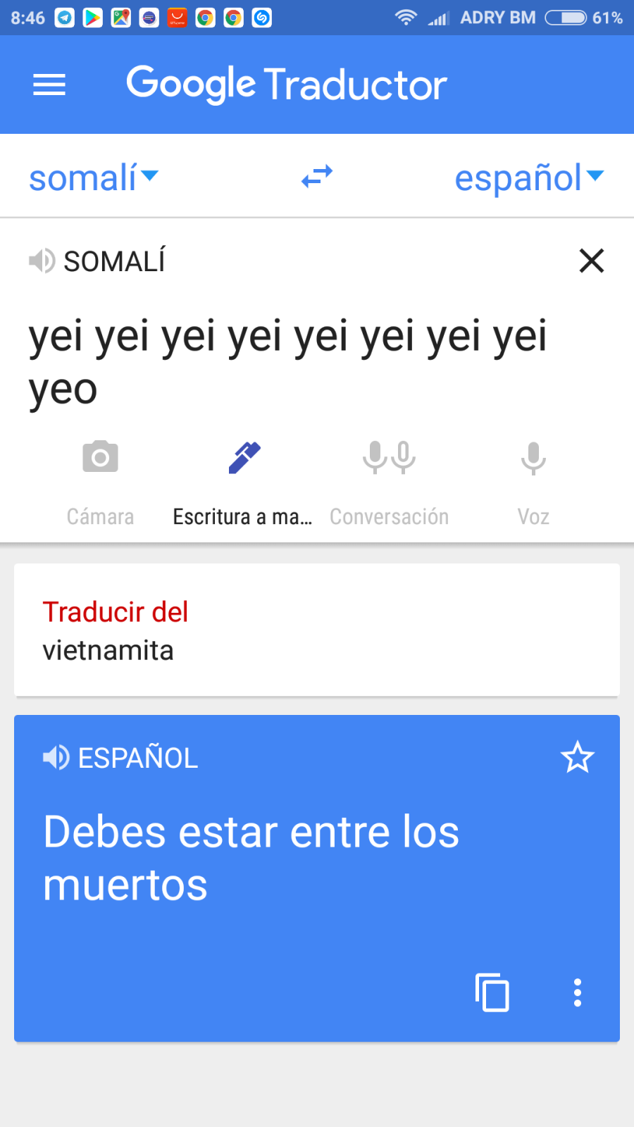 El Secreto De El Traductor Google Es Algo Muy Extraño........ Si Pones La Palabra Yei En El Idioma De Somalí Te Saldra Igual Pero.... Si La Repites 10 Veces Que Sucede Te Da Un Mensaje Que Te Sorprenderá Ya Que Es Muy Extraño Aun Nadie Da Una Explicación Coherente ¿Que Piensan..? Se Los Dejo A Su Criterio