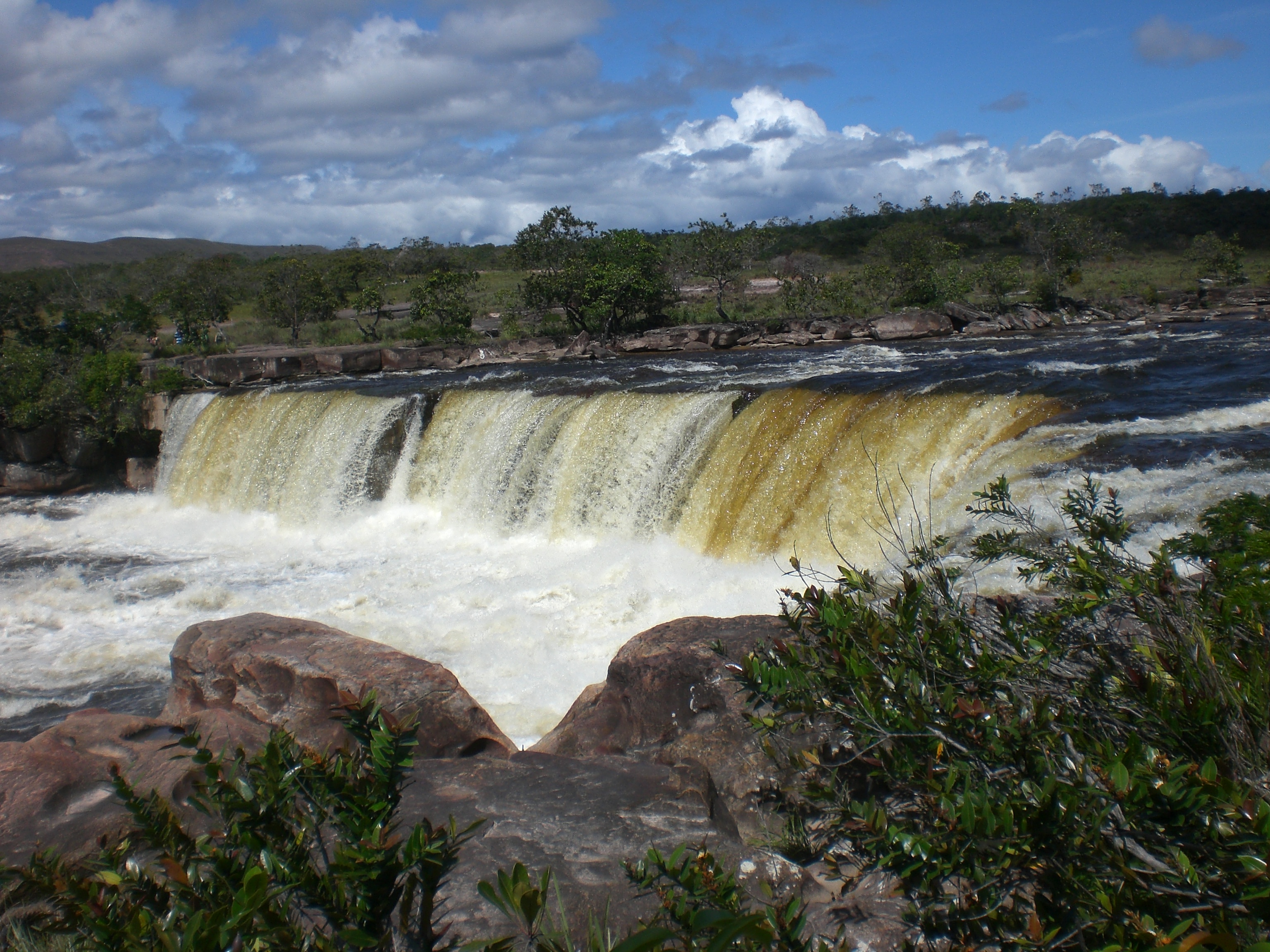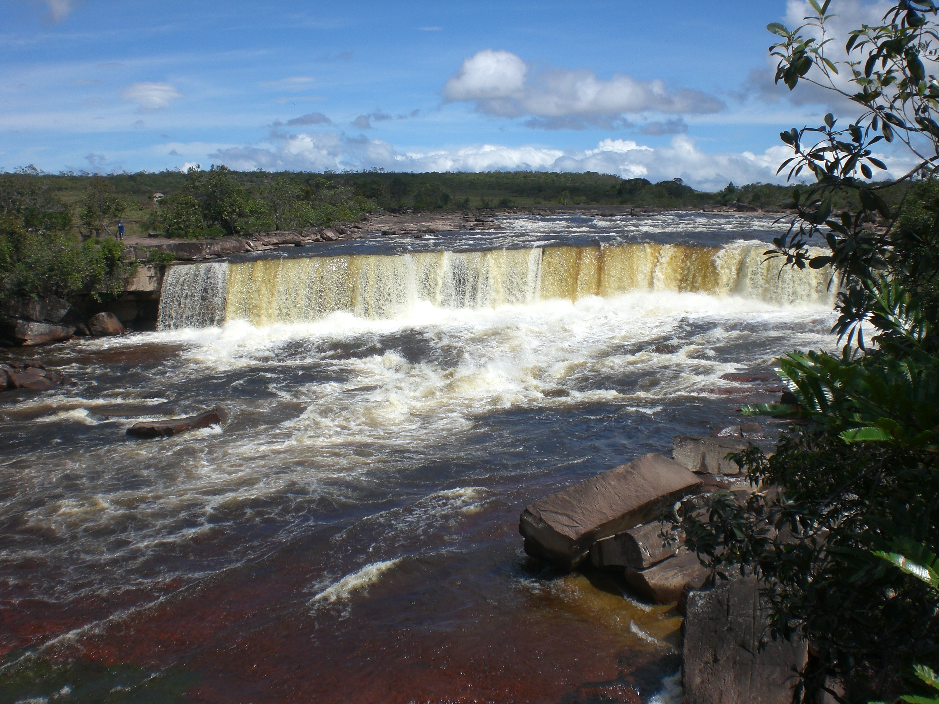 Sus aguas vienen del río yuruani y caen en forma de una cortina.