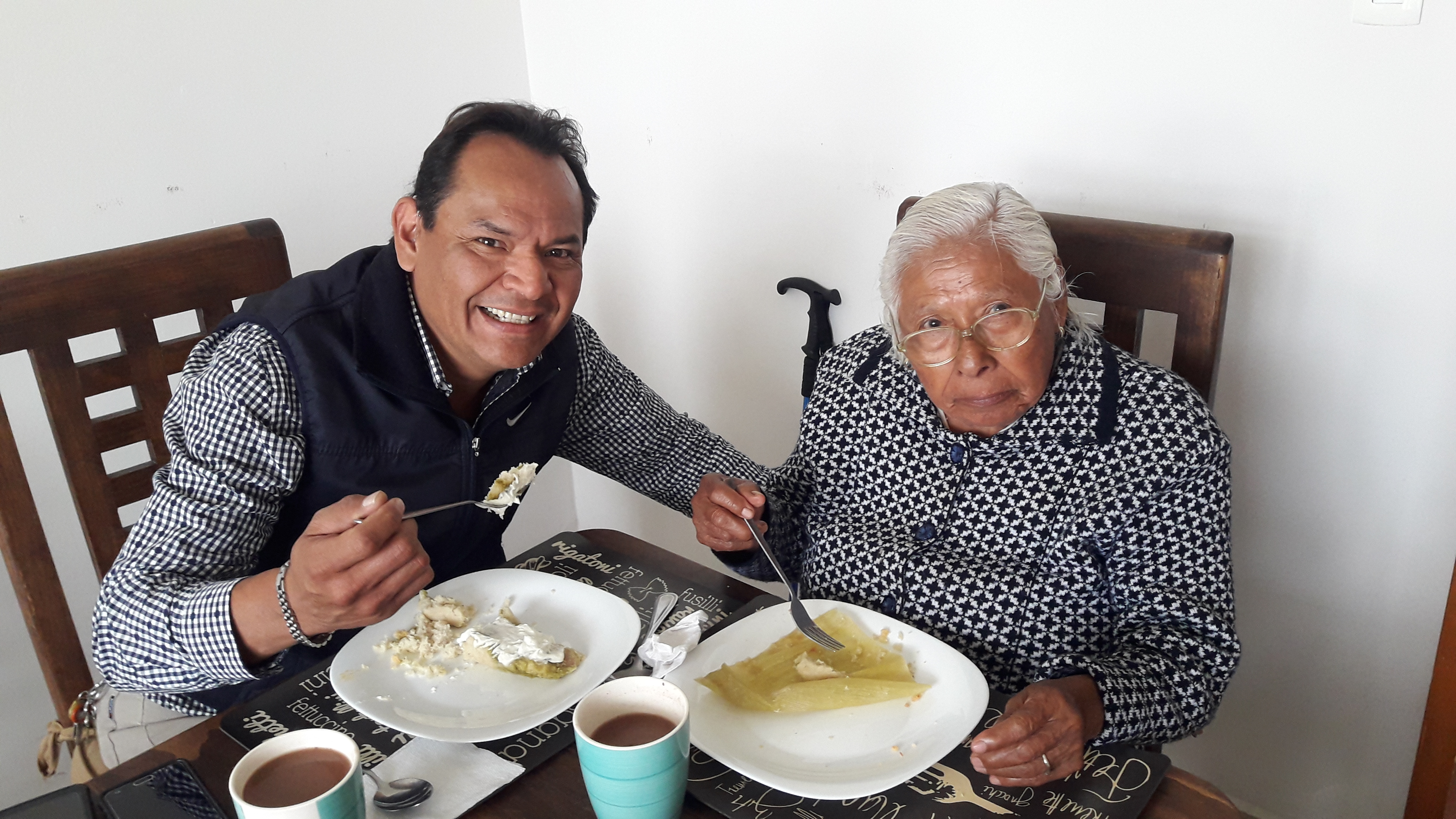 Por fin comimos los riquísimos tamales de varios sabores con atole de chocolate!