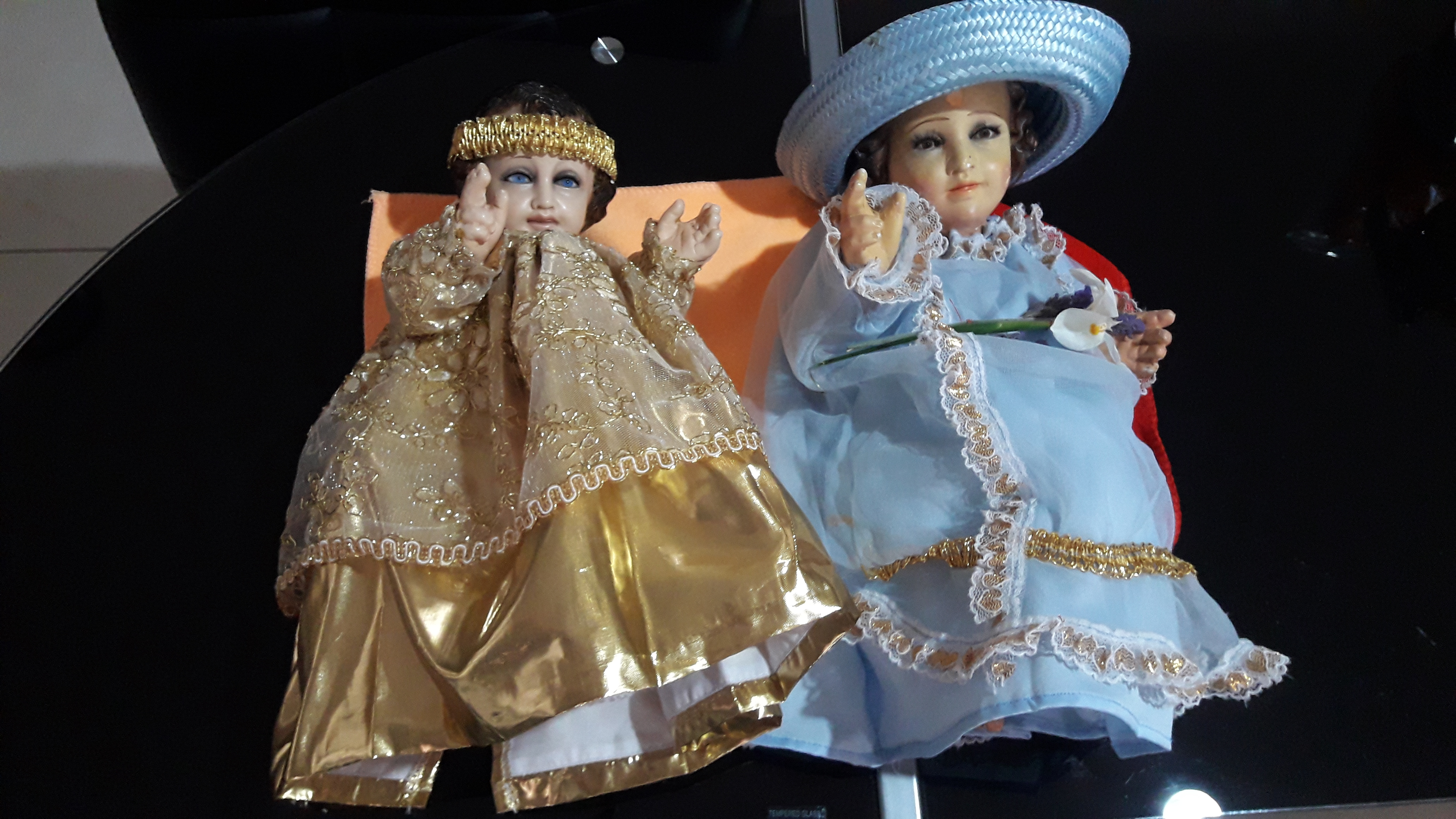 Aquí está el bebé vestido con otro bebé Jesús.