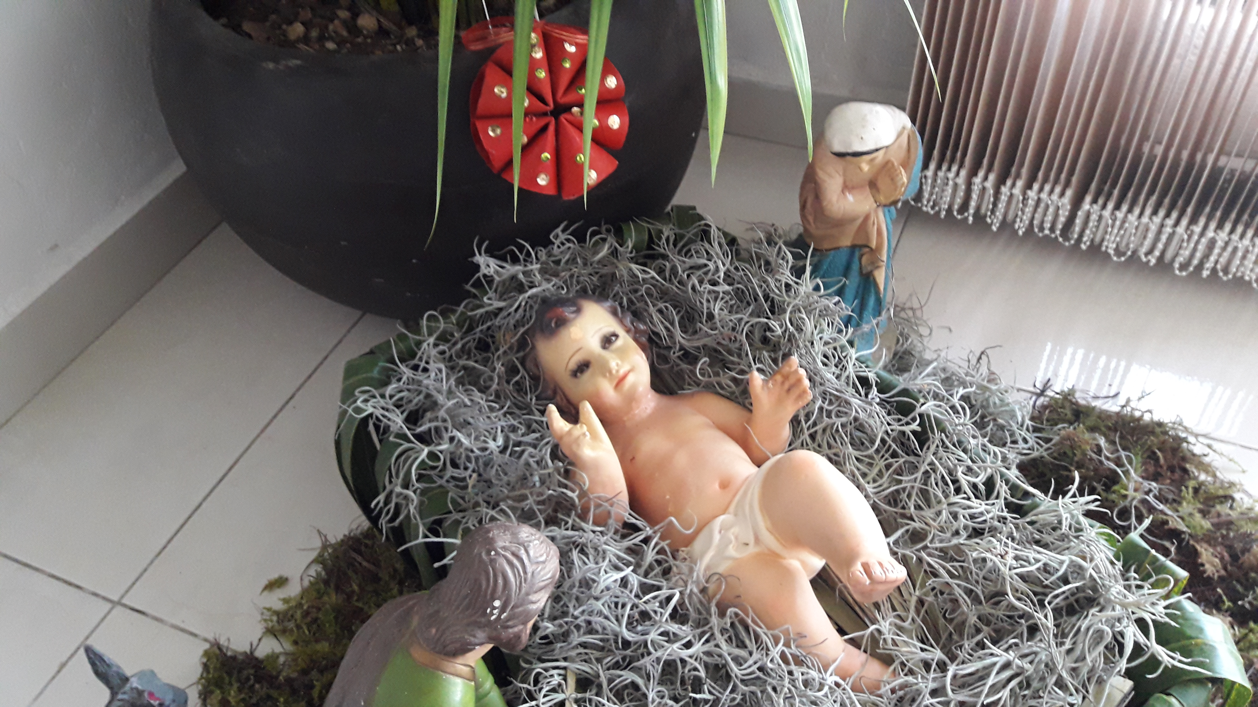 También hoy es el día que vestimos al bebé Jesús. Aquí estaba antes de ser vestido.