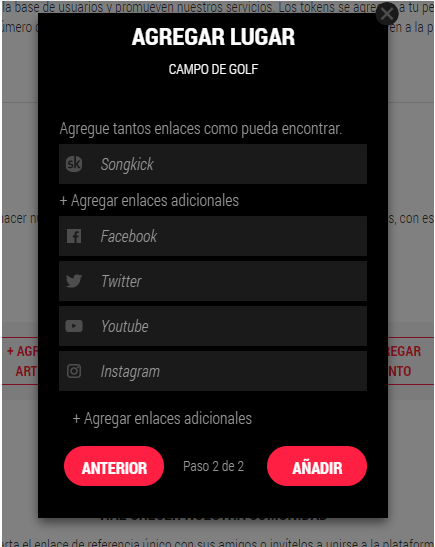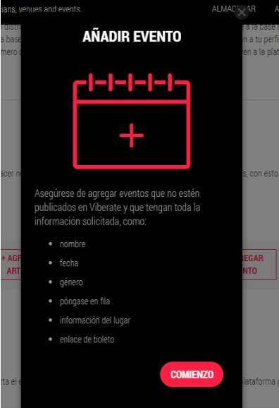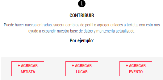 aca puedes agregar artista, lugar o evento que no este ya regitrado en la pagina