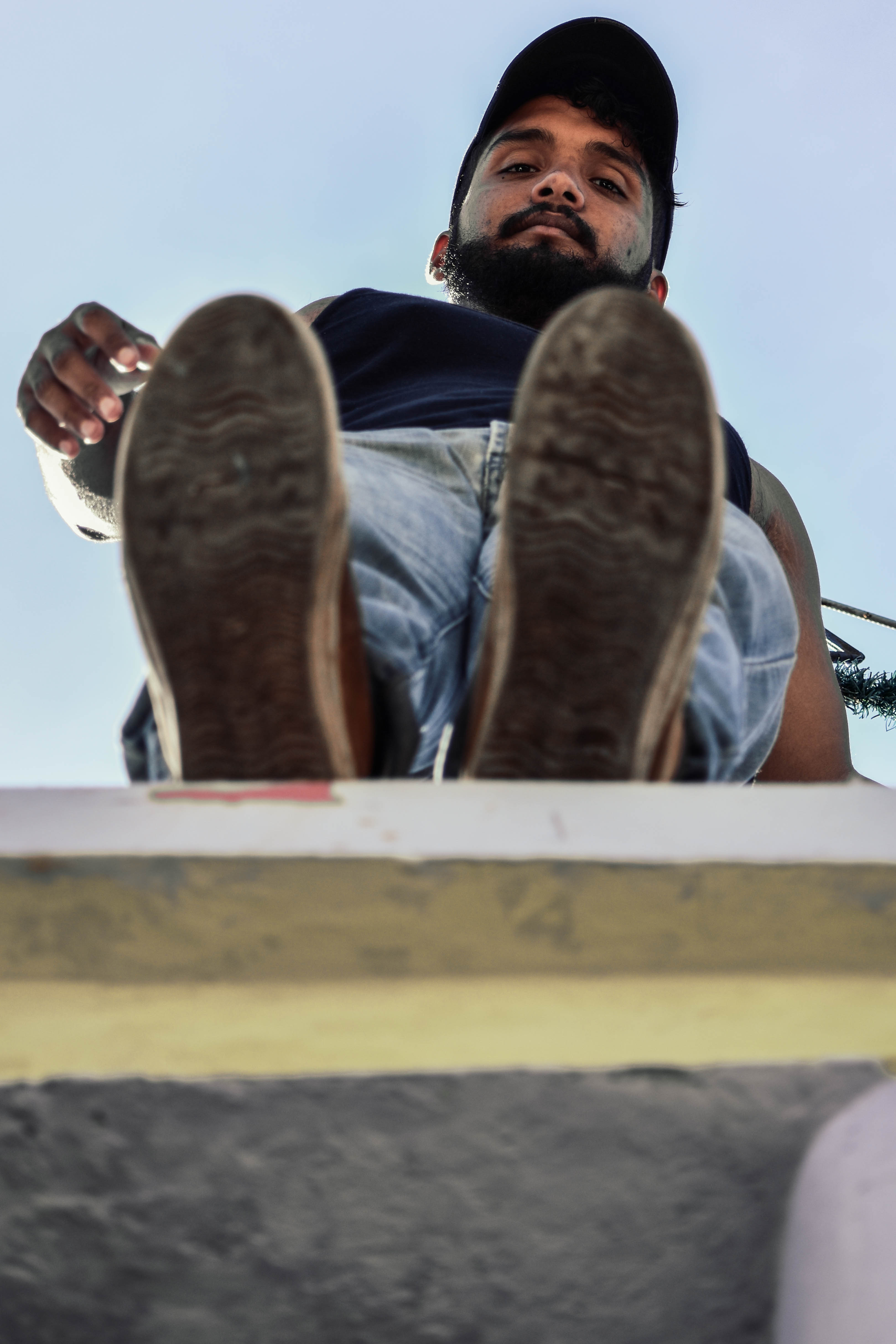 La cámara debe estar completamente bajo el sujeto. Aquí conseguimos un efecto más exagerado del modelo y una perspectiva central, ya que las líneas tienden hacia el centro.