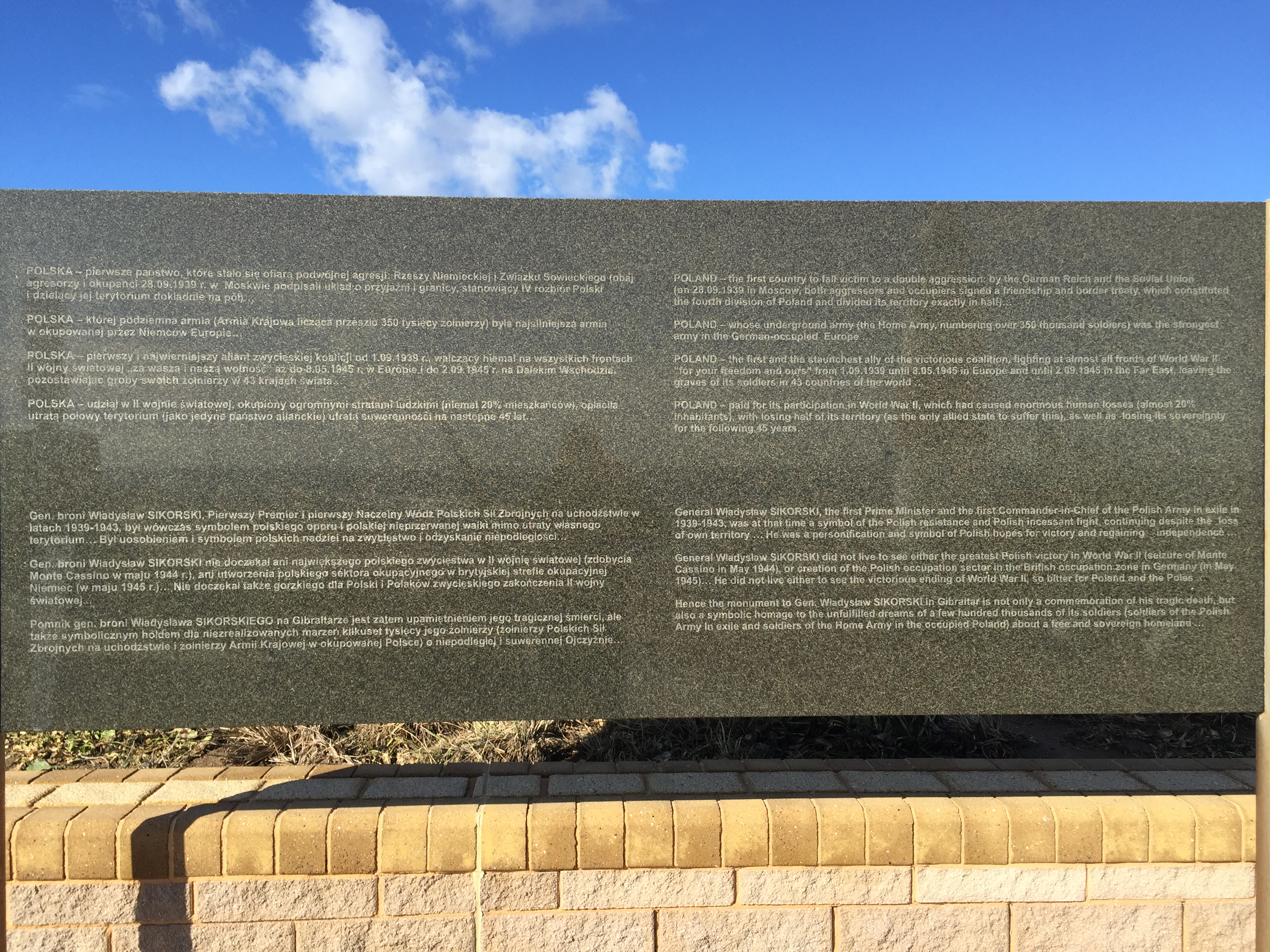 En Europa point, la parte más al Sur de Gibraltar hay una hélice de un bombardero B24 Liberator donde viajaba El General Sikorski. El General polaco en el exilio durante la Segunda Guerra Mundial. El General reclamaba la liberación de las tropas polacas que se rindieron a los soviéticos cuando estos invadieron Polonia en 1939 junto a Alemania. En 1943 se encontraron las tropas nazis las fosas comunes de miles de soldados polacos asesinados , lo que llevó a una de los tropiezos más grande entre aliados durante la guerra.