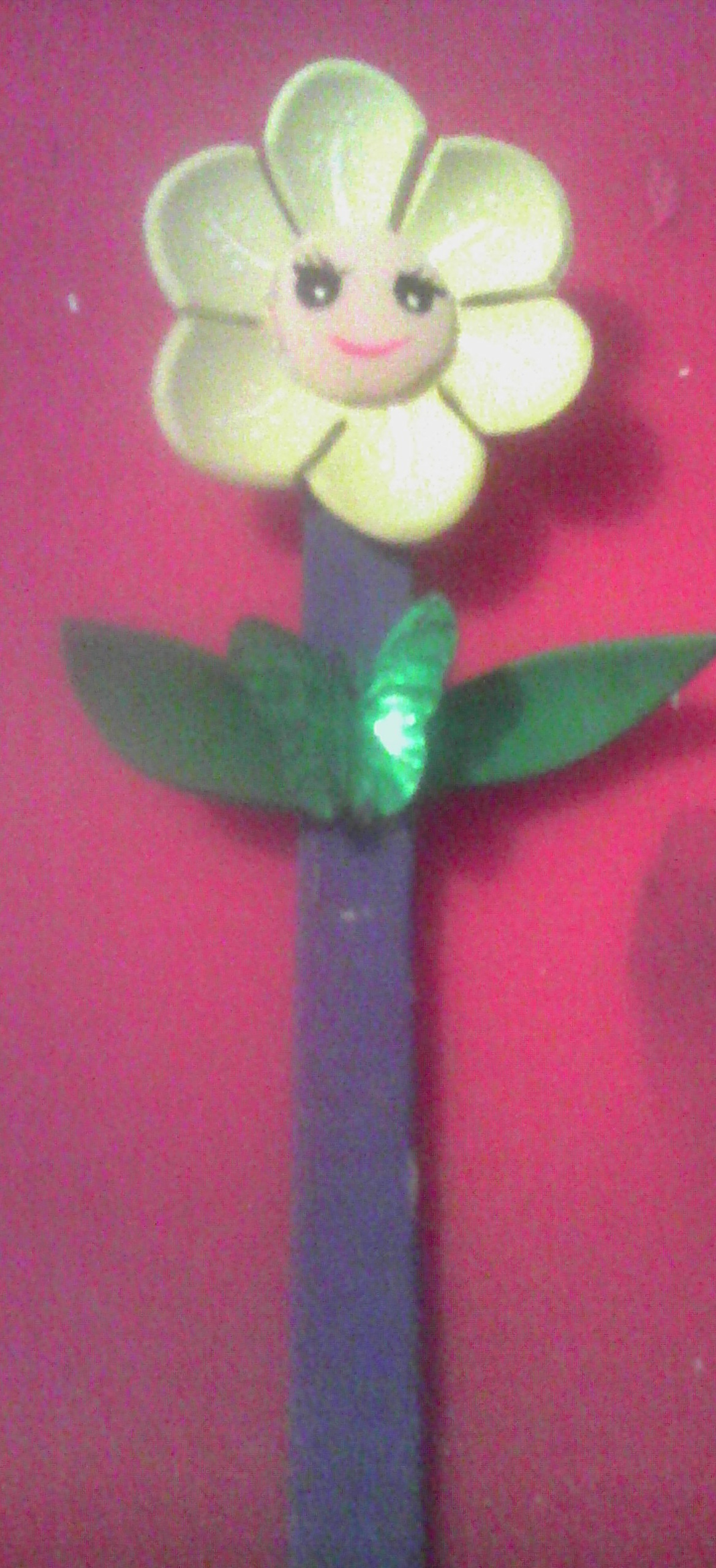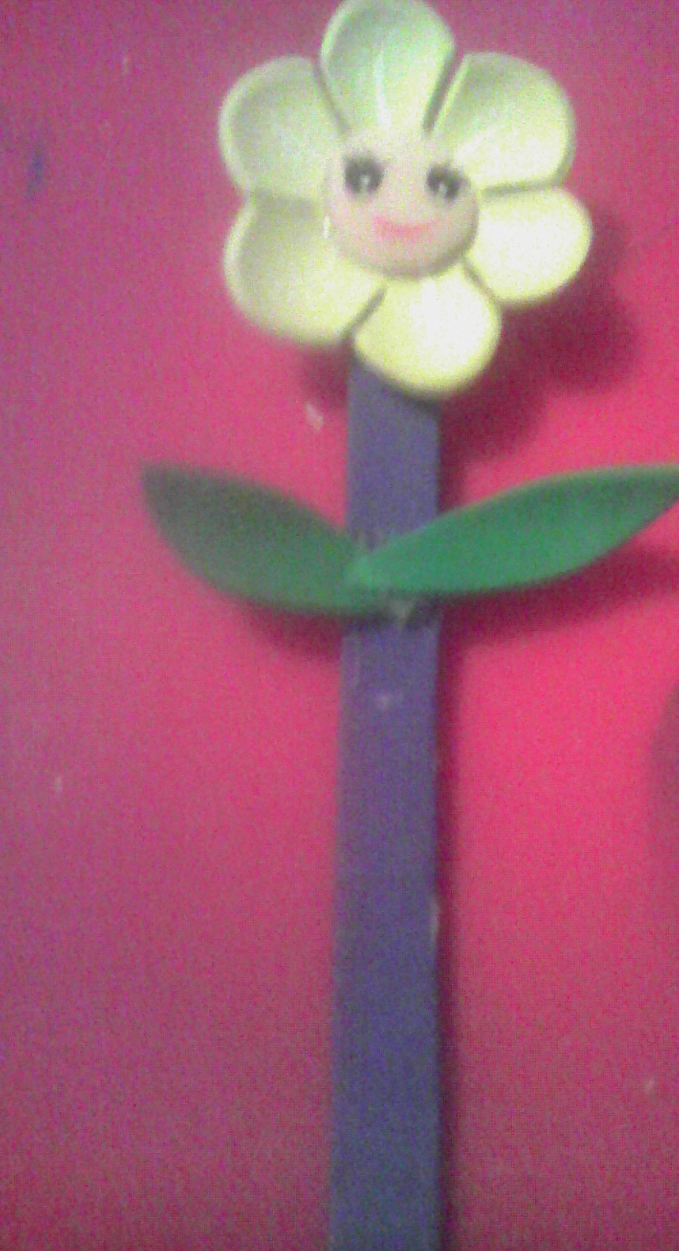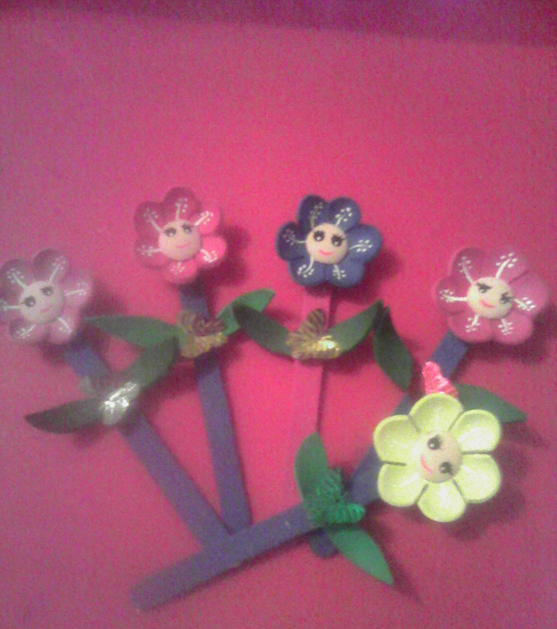 Se pega con silicón las partes de la flor en la paleta.