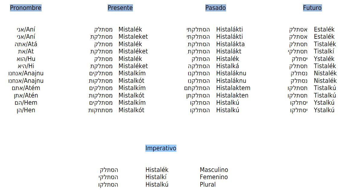 Me complace traerles el ejercicio binián hitpaél de hoy. Les recuerdo que pueden buscar en nuestra basta lista de verbos de anteriores publicaciones. Espero que les sea útil en su aprendizaje, tanto como a mí me sirve este repaso.