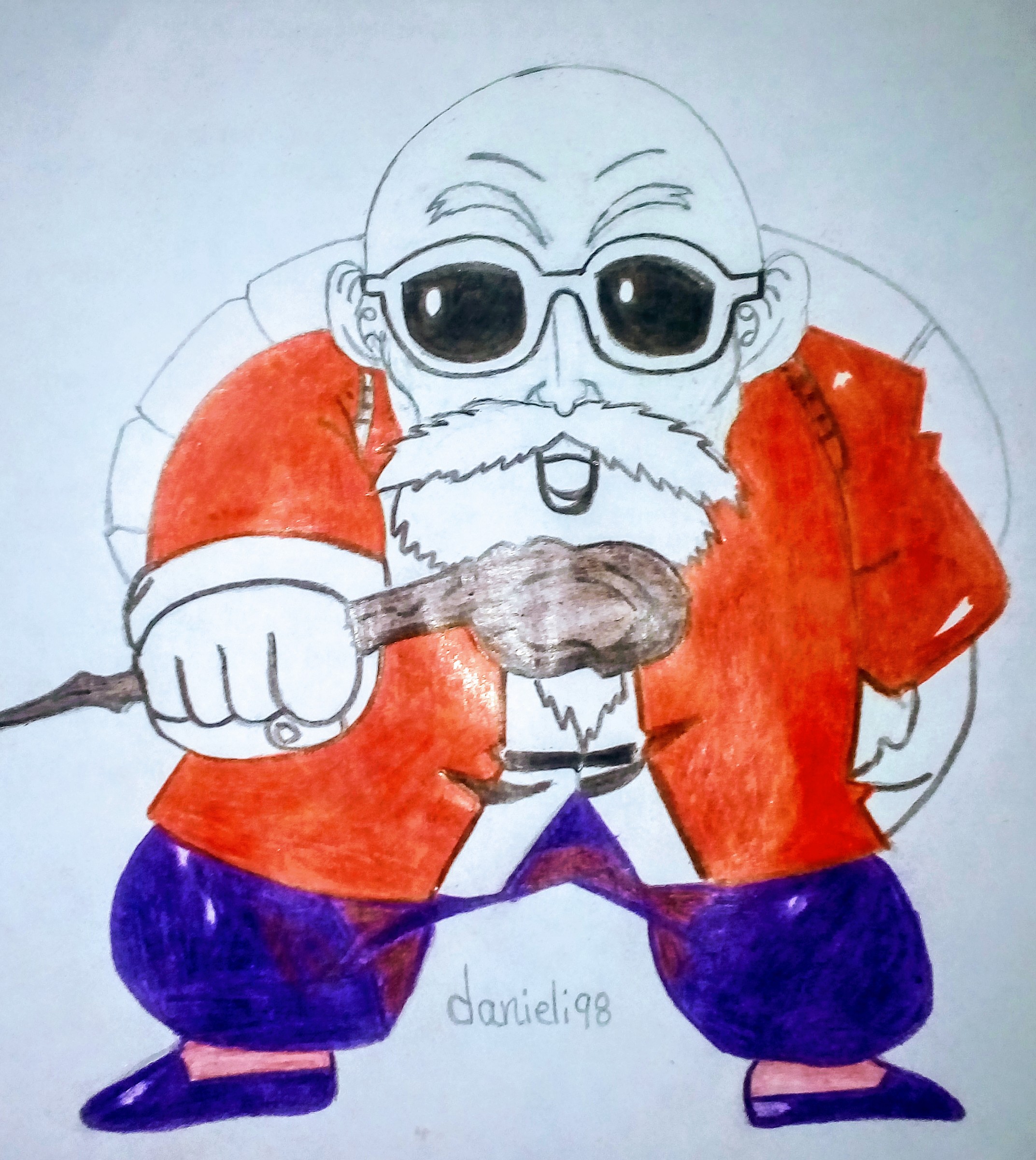 Hola amigos de steemit, hoy les estaré hablando de este personaje de la serie de dragón Ball llamado maestro Roshi, es muy poderoso y es un buen orientador a las personas por sus experiencias, me gusta hacer estos dibujos en fin no tengo preferencias hago lo que se me ocurra al instante y fue este personaje.