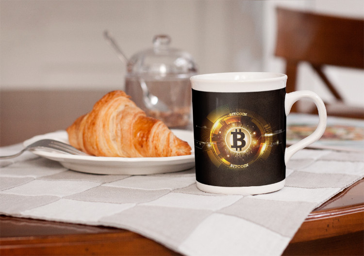 Como sé que te gustan las criptomonedas y todo lo que esta relacionado al tema te hice esta taza de café con un logo de Bitcoin, para que te acompañe al momento de hacer tu post y por supuesto con un buen Cruasán.