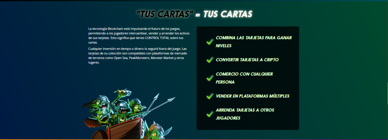 Es un Juego de cartas coleccionables descentralizado basado en la tecnología de blockchain. Es similar en concepto a juegos como Magic the Gathering Hearthstone. donde construyes una coleccion de cartas que tiene diferentes estadísticas y habilidades y la puedes usar para luchar contra otro jugador en linea. al utilizar la tecnología de blockchain, los jugadores puedes intercambiar las trajeras digitales y venderlas libremente como si fuera tarjetas físicas, sin el control de ninguna empresa o entidad centralizada.