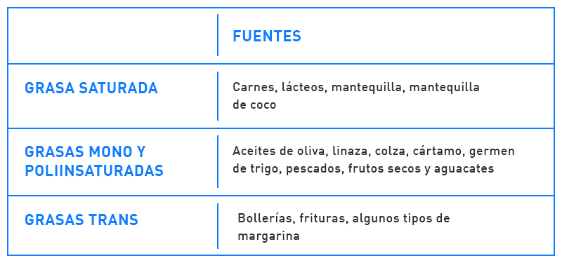 Es importante destacar que aporta 9 calorías por gramo. Además, debemos preferir las grasas mono y pliinsaturadas.