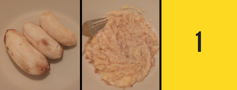 Retira la piel de las bananas y tritúralas con la ayuda de un tenedor.