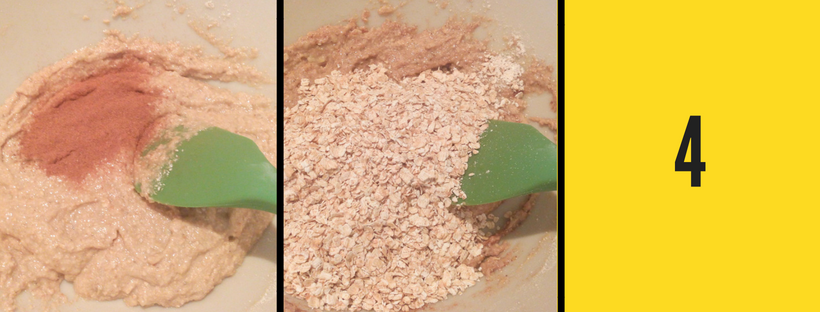 Añade la canela y revuelve. Después incorpora la avena, y así, ya tendrás la masa lista para refrigerar por 30 minutos.