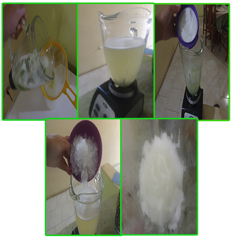 • Tomamos un colador para colocar el jugo, luego que colamos el jugo lavamos la licuadora y agregamos el jugo ya colocado para agregarle la azúcar y el hielo. Si es necesario le agregamos más agua(al gusto de cada persona).