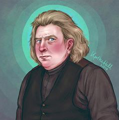 “Un anciano calvo y tremendamente gordo [...] La luz de la varita brilló sobre su reluciente calva sus saltones ojos y su enorme y plateado bigote de morsa [...] La coronilla de aquel personaje apenas llegaba a la altura del mentón de Dumbledore”.