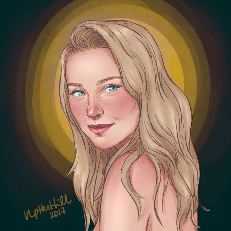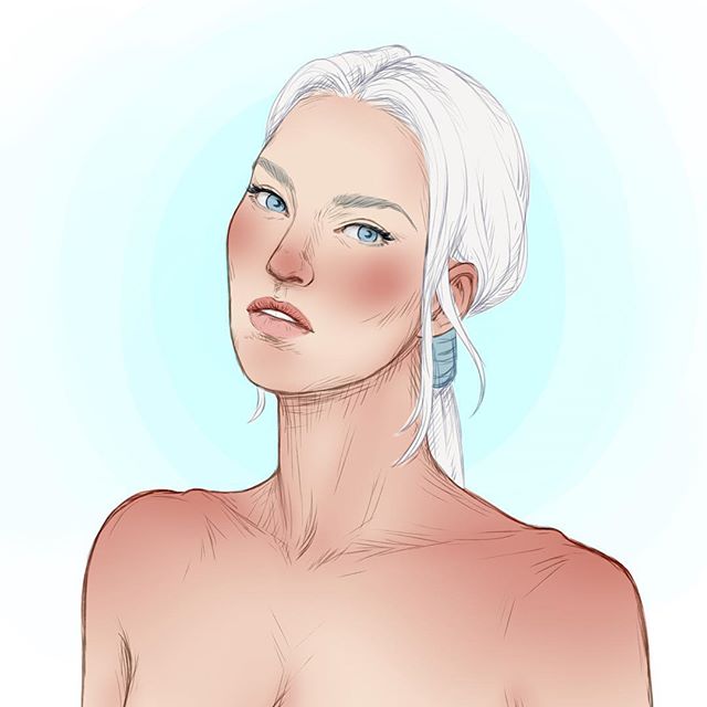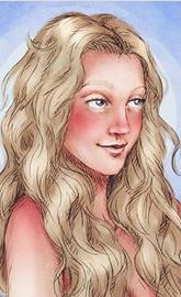 “Una joven de una belleza tan impresionante que la habitación pareció quedarse sin aire. Era alta y esbelta, tenia una larga cabellera rubia e irradiaba un débil resplandor plateado”.