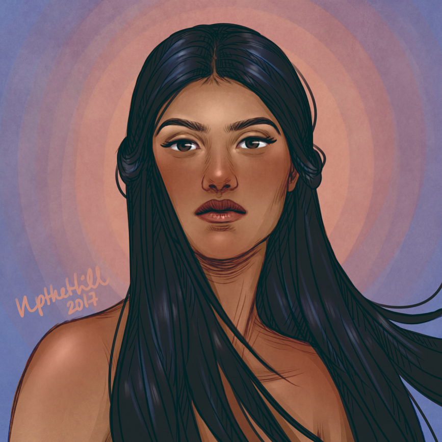 “Una chica muy guapa, cuyo cabello era negro, largo y reluciente”.
