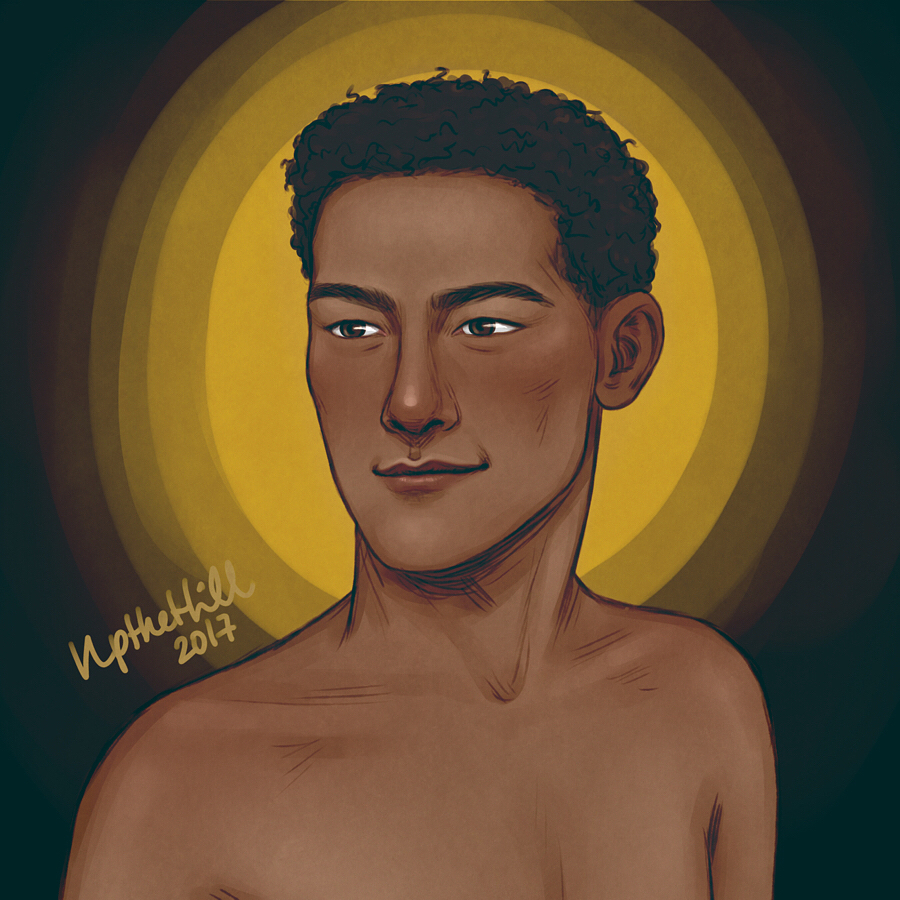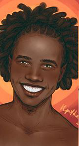 “[...] un mago negro y calvo [...] Tenía una voz grave y pausada, y llevaba un aro en la oreja”.