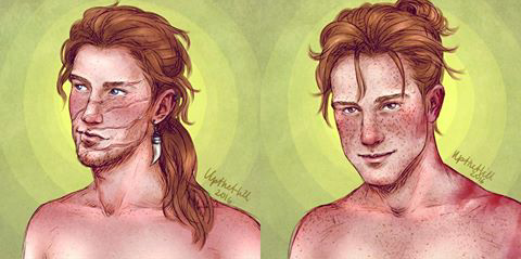 “Harry vio tendido ante él a un hombre de piel clara, algo pecoso, con una mata de pelo rubio. [...] tenía arrugas en el contorno de los ojos y parecía mucho mayor”.