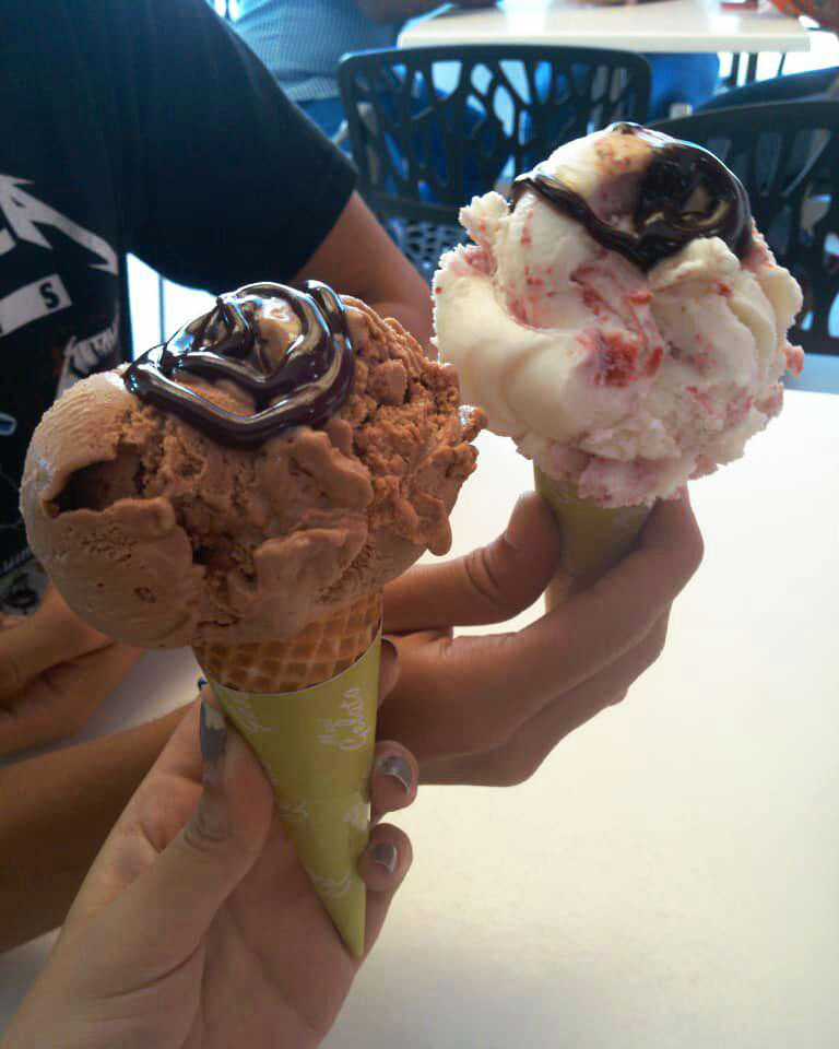 MaxiGelato (sabores: Ferrero Rocher y Fresas con crema)