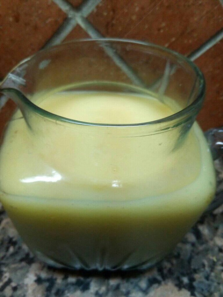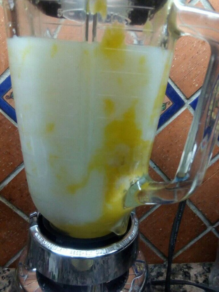 1 Boiled Mango + Boiled white corn water + Blender = Happiness