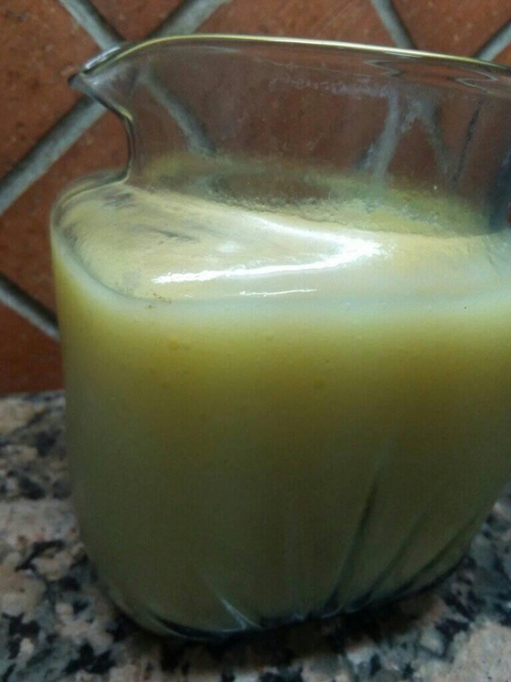 Mango cocido + Agua de Maíz + Licuadora = Felicidad.