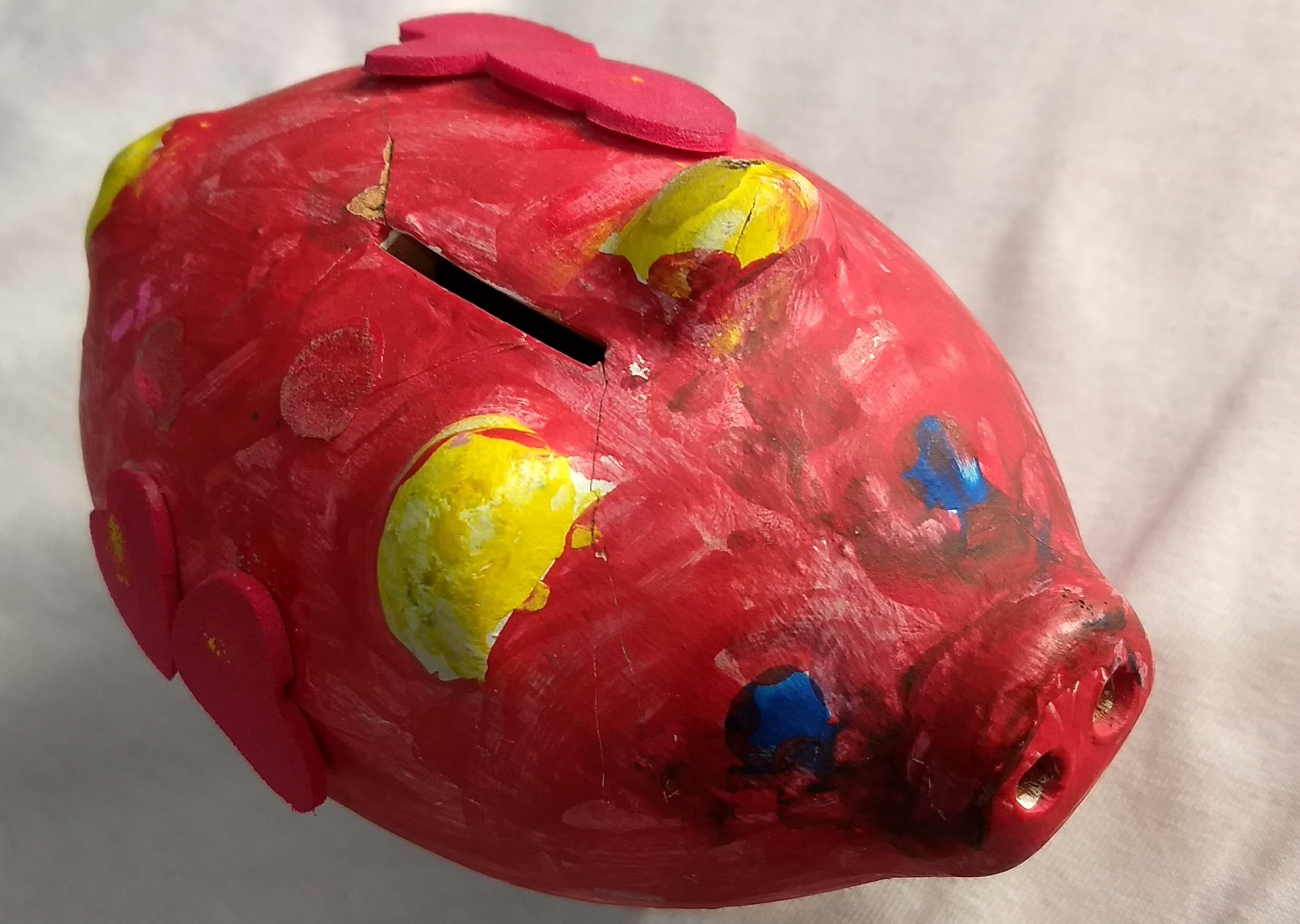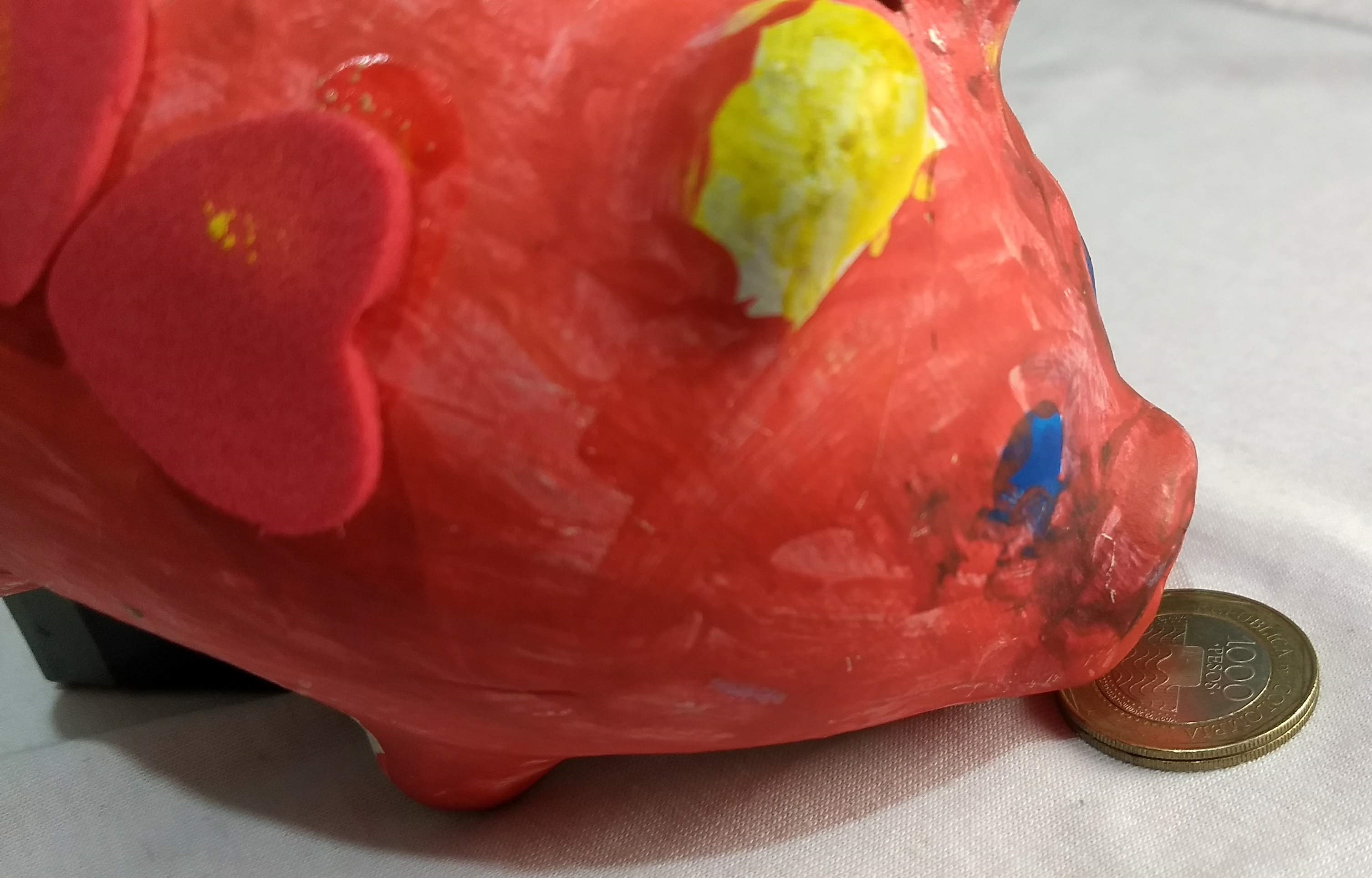 Mis hijas tienen desde hace un tiempo un marranito el cual han cuidado con mucho esmero... pero hace pocos días sufrió un ataque con arma contundente... y quedó muy lesionado... lo pudimos reconstruir pero quedaron heridas imborrables jejeje