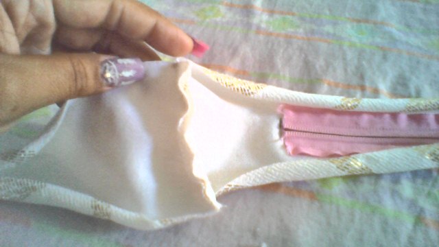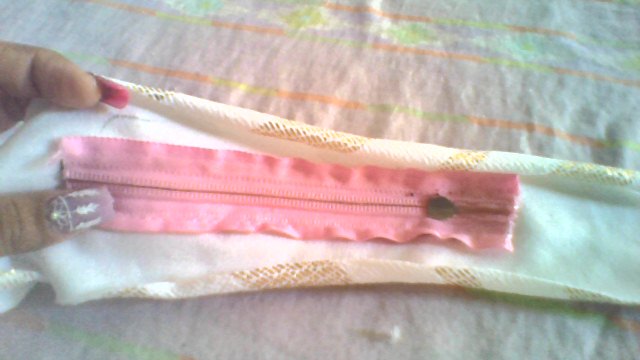 Medimos el largo de nuestro cierre hacemos un corte y lo pegamos a la tira.