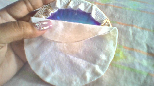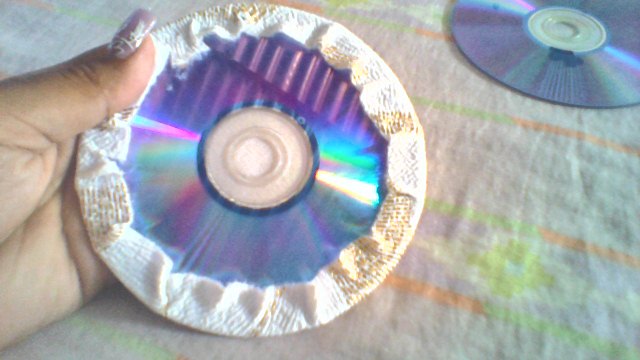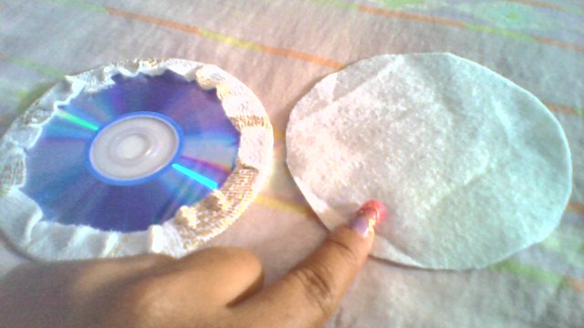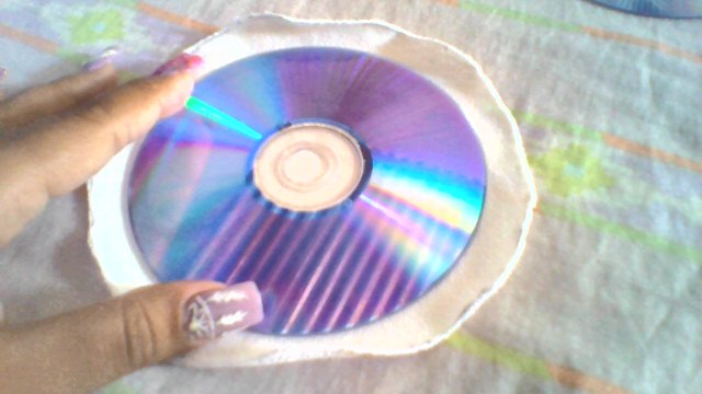 Luego vamos a pegar el circulo de fieltro para tapar totalmente el CD.