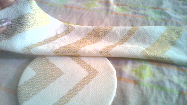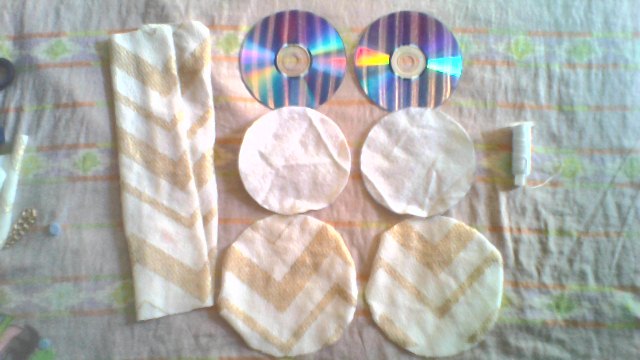 El primer paso es colocar el CD en el centro del circulo de tela.