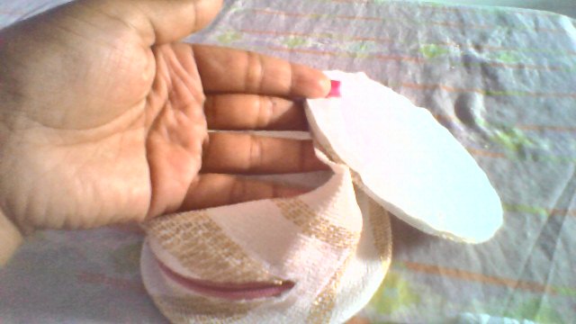 El primer circulo debe tener al menos 1cm sobrante al rededor para poder pegar la tela al CD usando el silicon y debe quedar totalmente cubierto.