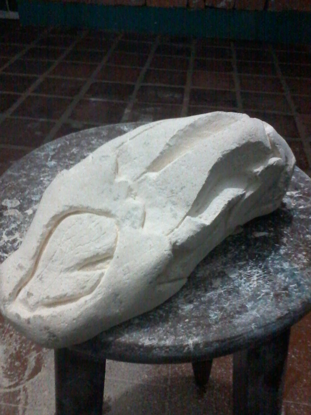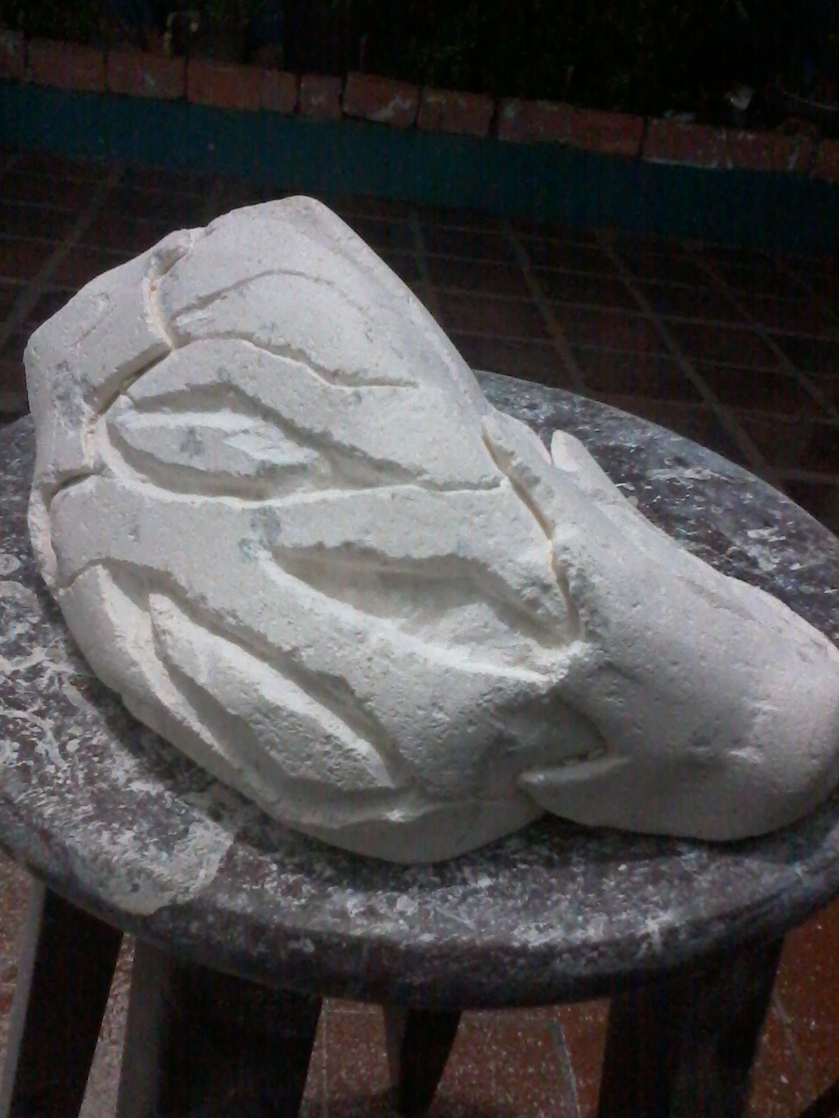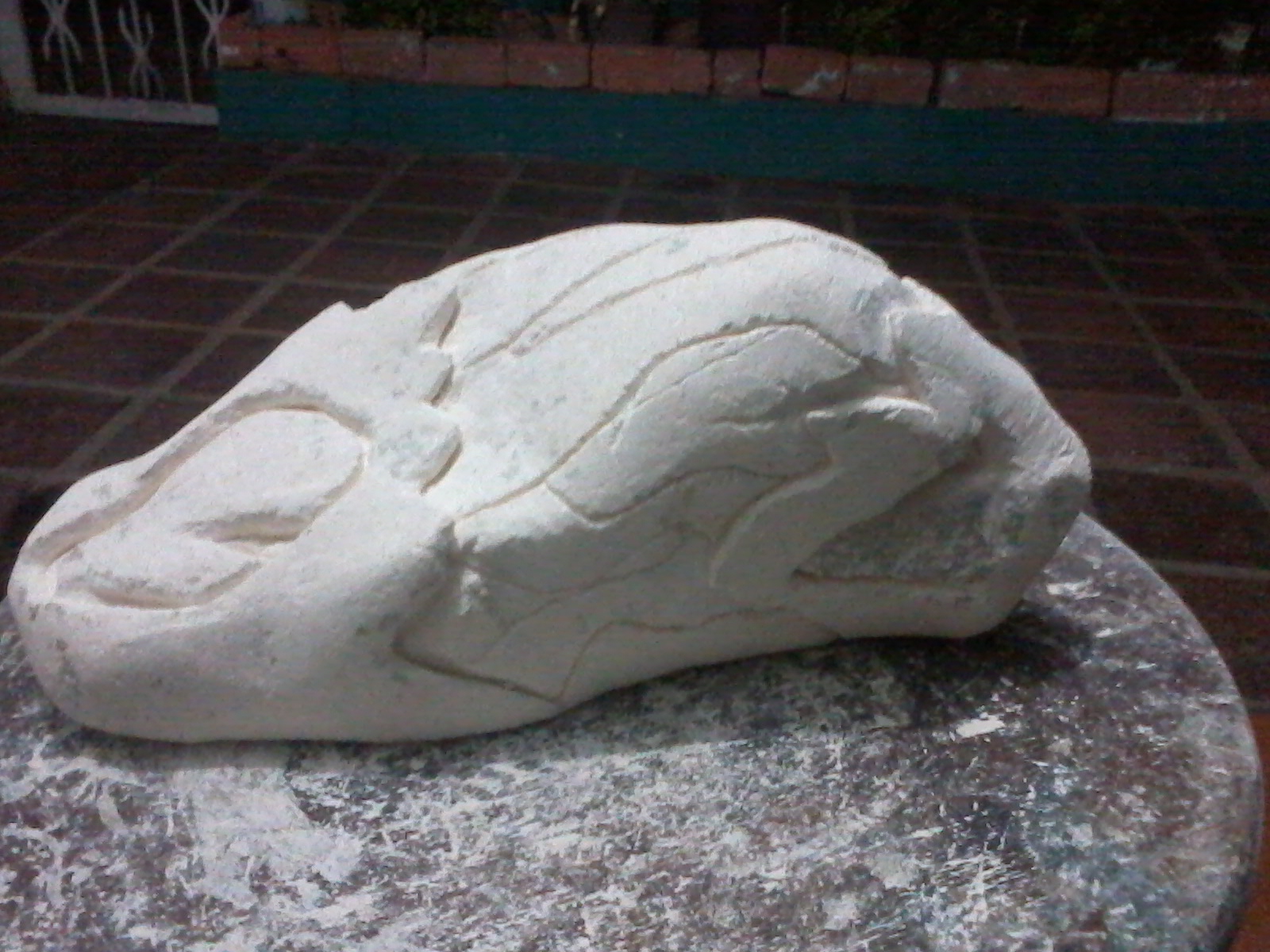 En este caso, el proceso del tallado en piedra es bastante similar al método que utilizo en la madera; cabe mencionar que esta talla ha sido la única que he realizado con este material y su proceso, como siempre, va de lo “general a lo particular”.