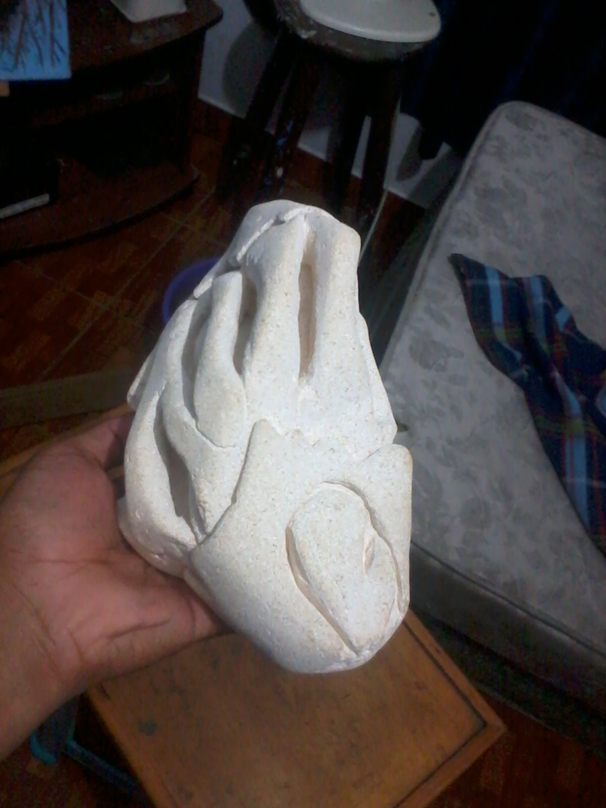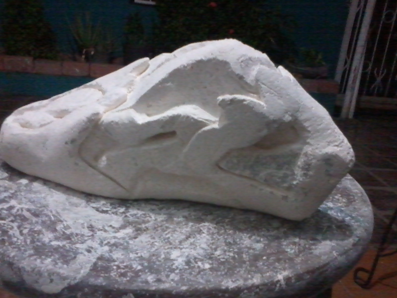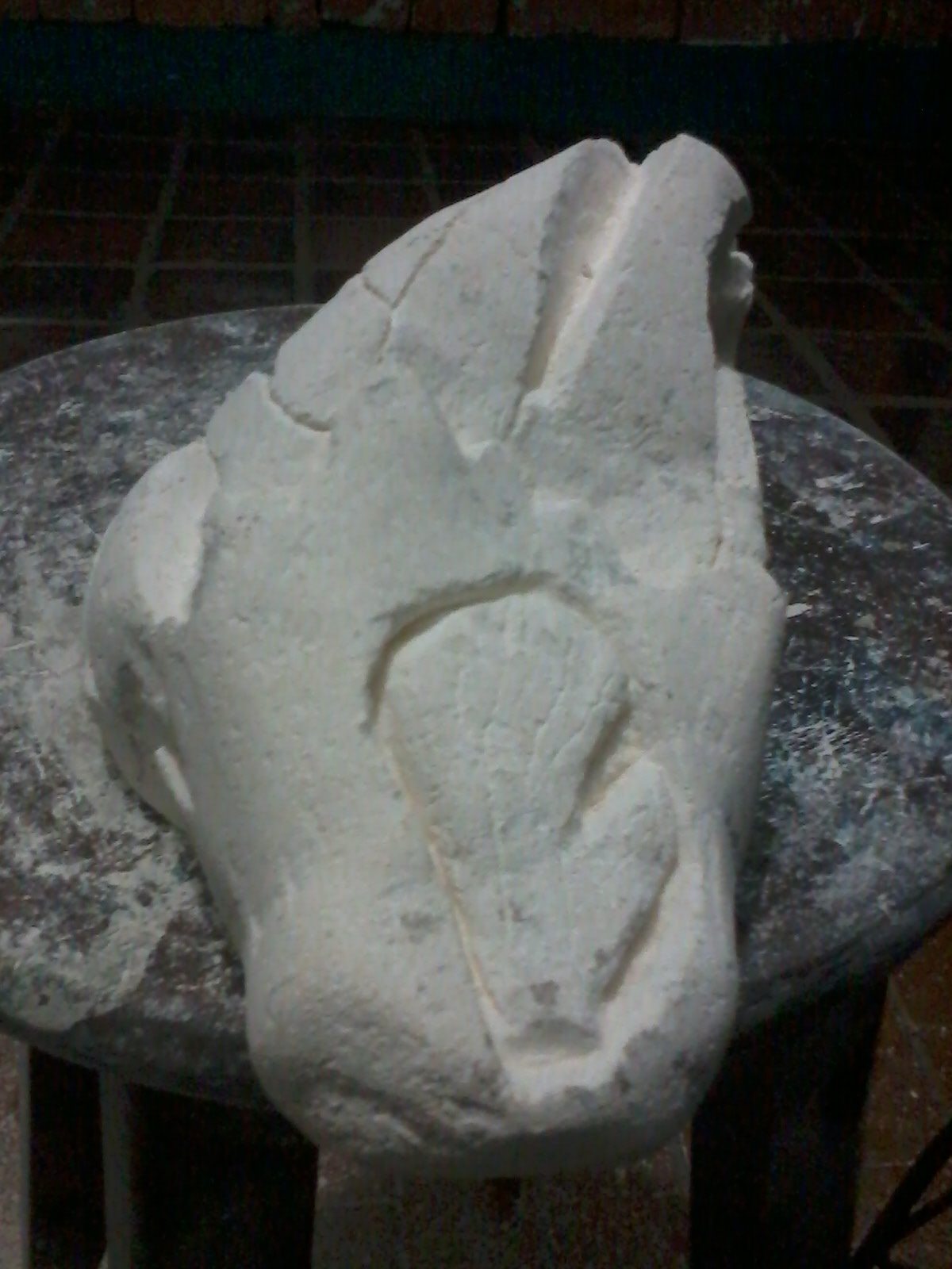 En este caso, el proceso del tallado en piedra es bastante similar al método que utilizo en la madera; cabe mencionar que esta talla ha sido la única que he realizado con este material y su proceso, como siempre, va de lo “general a lo particular”.