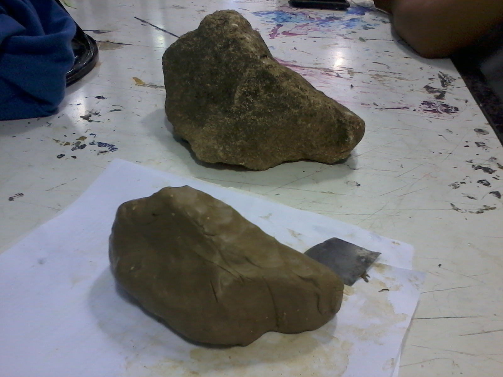 Desde el inicio se realizó un pequeño modelo en arcilla que sirvió como maqueta del tallado a realizar, el cual desde el inicio se le dio la forma más acercada al de la piedra y poder de esta forma trabajar bajo las “condiciones formales similares”