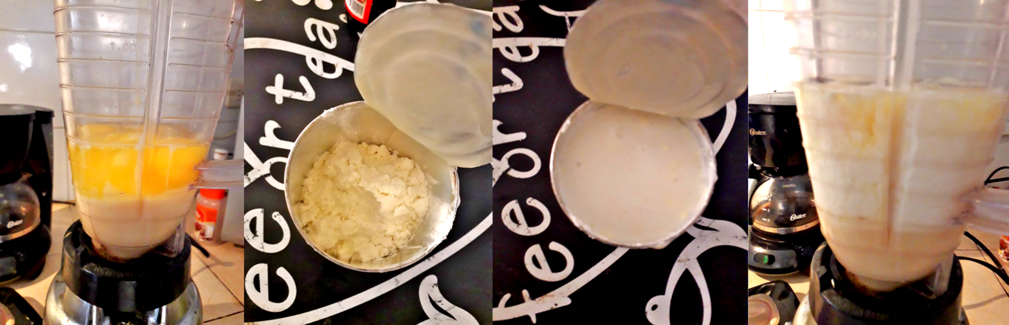Luego agregamos la leche condensada y los huevos a la licuadora, luego diluimos la leche en polvo en la misma lata de la leche condensada y agregamos a la licuadora con dos cucharadas de vainilla. Licuamos por unos segundos.
